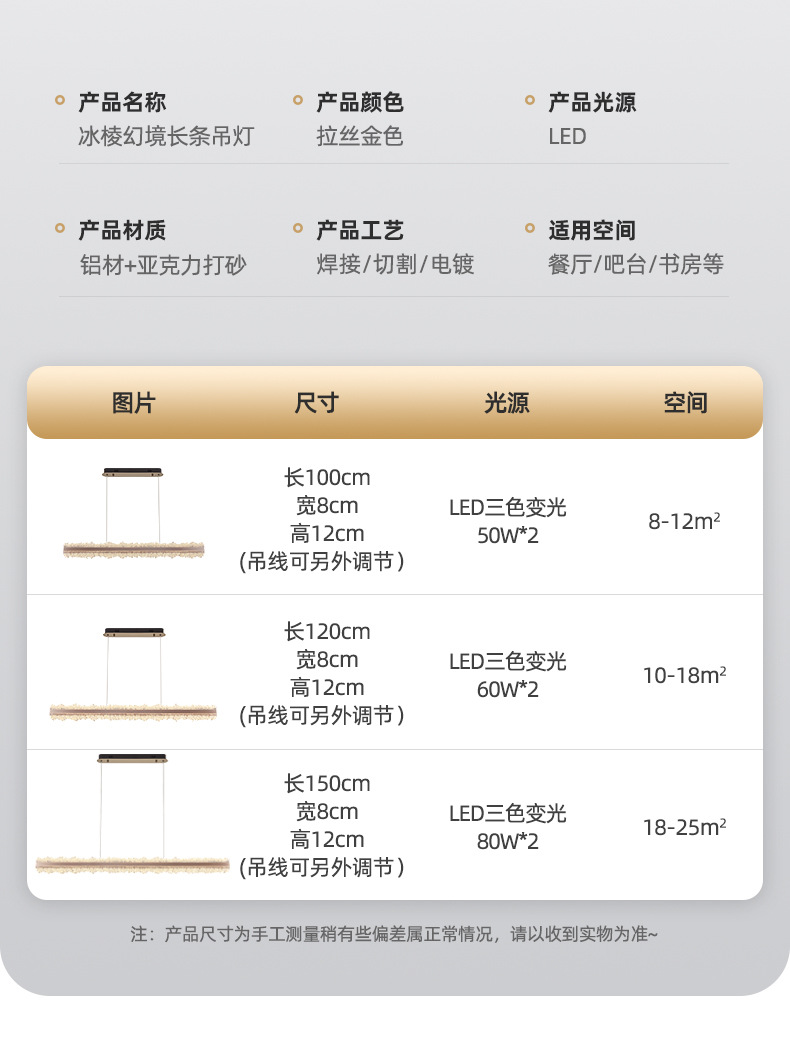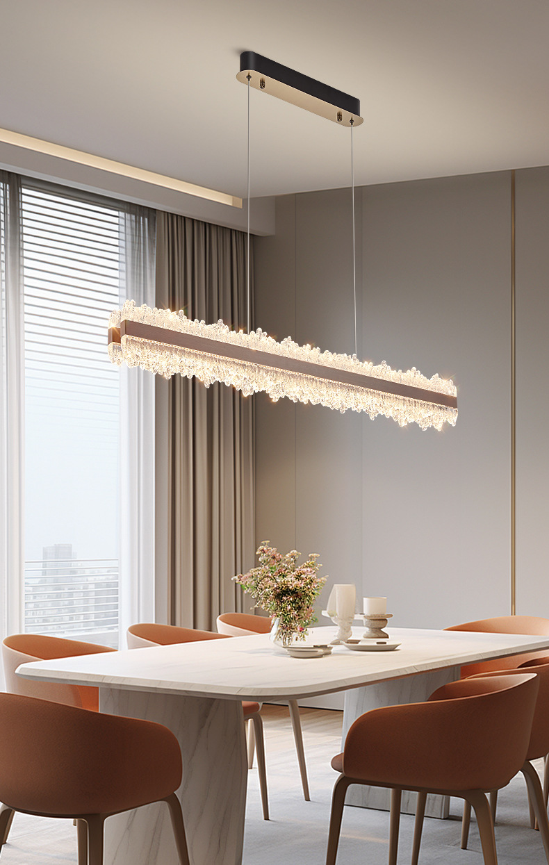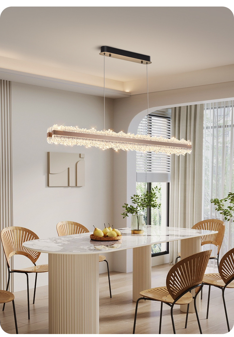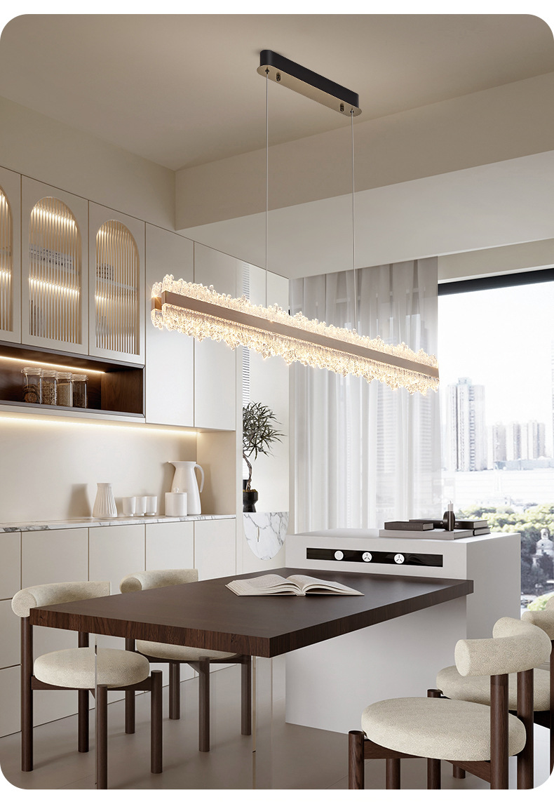 意式吧台餐厅吊灯玫瑰金一字长条灯现代客厅亚克力枝形灯智能