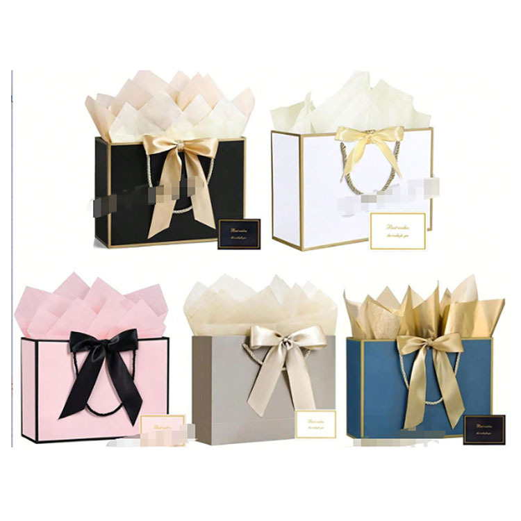 スポットリボンスクエア底ポータブル紙袋、カラフルで絶妙な包装ギフトバッグ、衣料品ショッピングバッグ、ロゴバッグを印刷可能