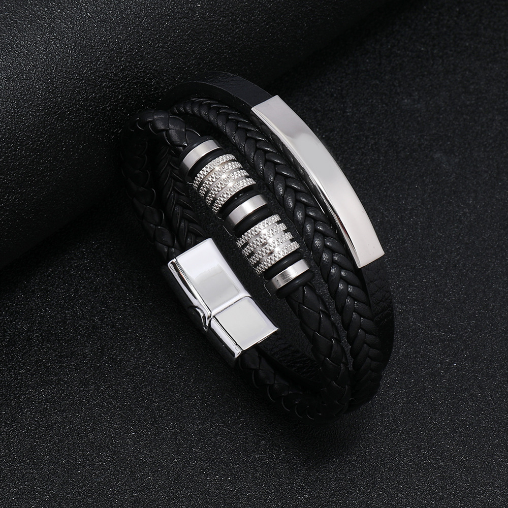 Amazonの新しい編組レザーロープメンズレザーブレスレット、パーソナライズされたファッショナブルなチタンスチールアクセサリーブレスレット、磁気バックルメーカー