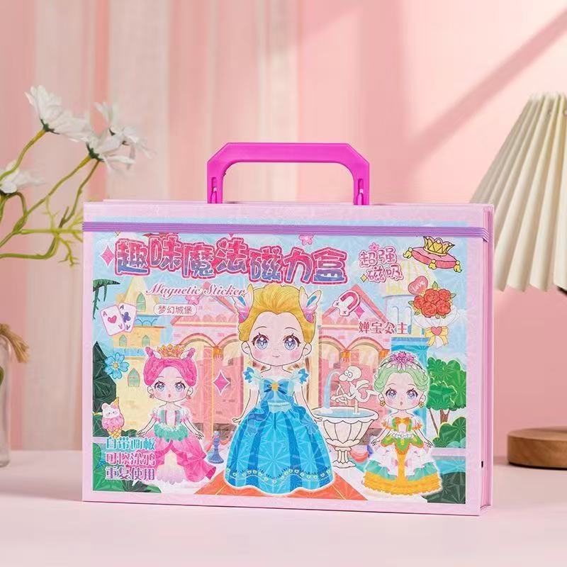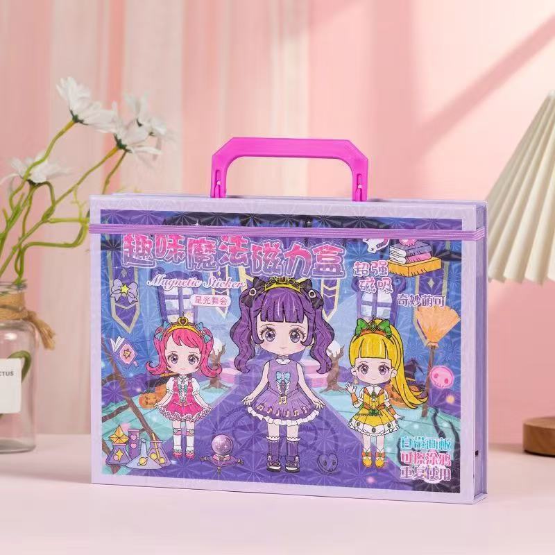 趣味魔法磁力箱クロミエサ萌可磁力換装女の子絵画シール玩具収納箱