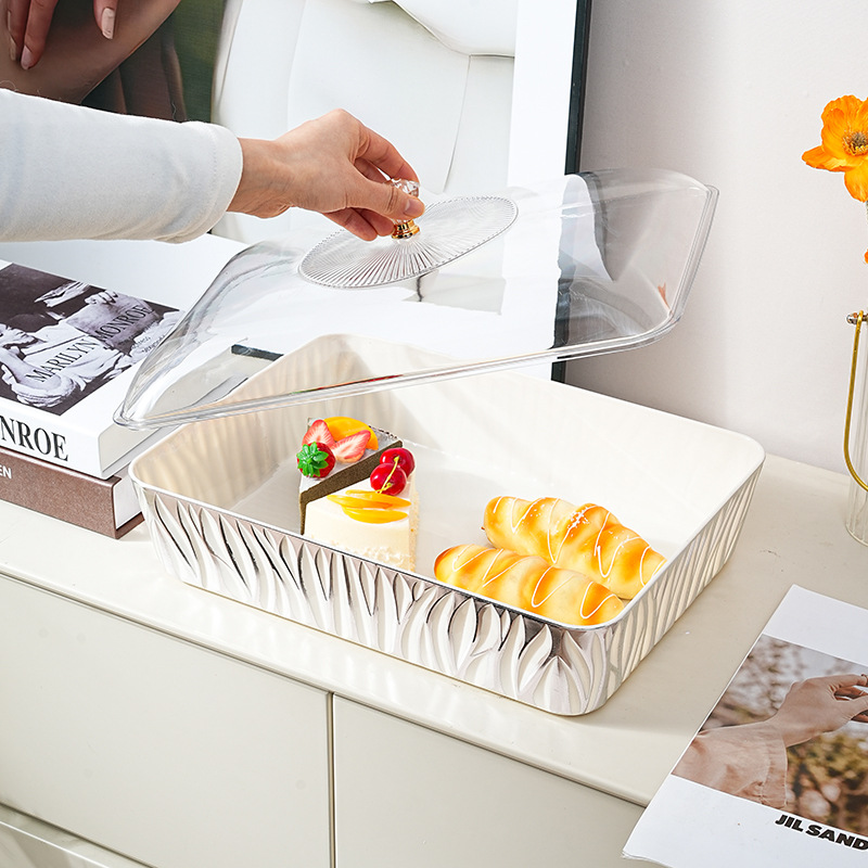 2025 新しいフルーツプレート蓋付きホームリビングルームスナック収納ボックスプラスチック PET 肥厚防塵ディナープレート