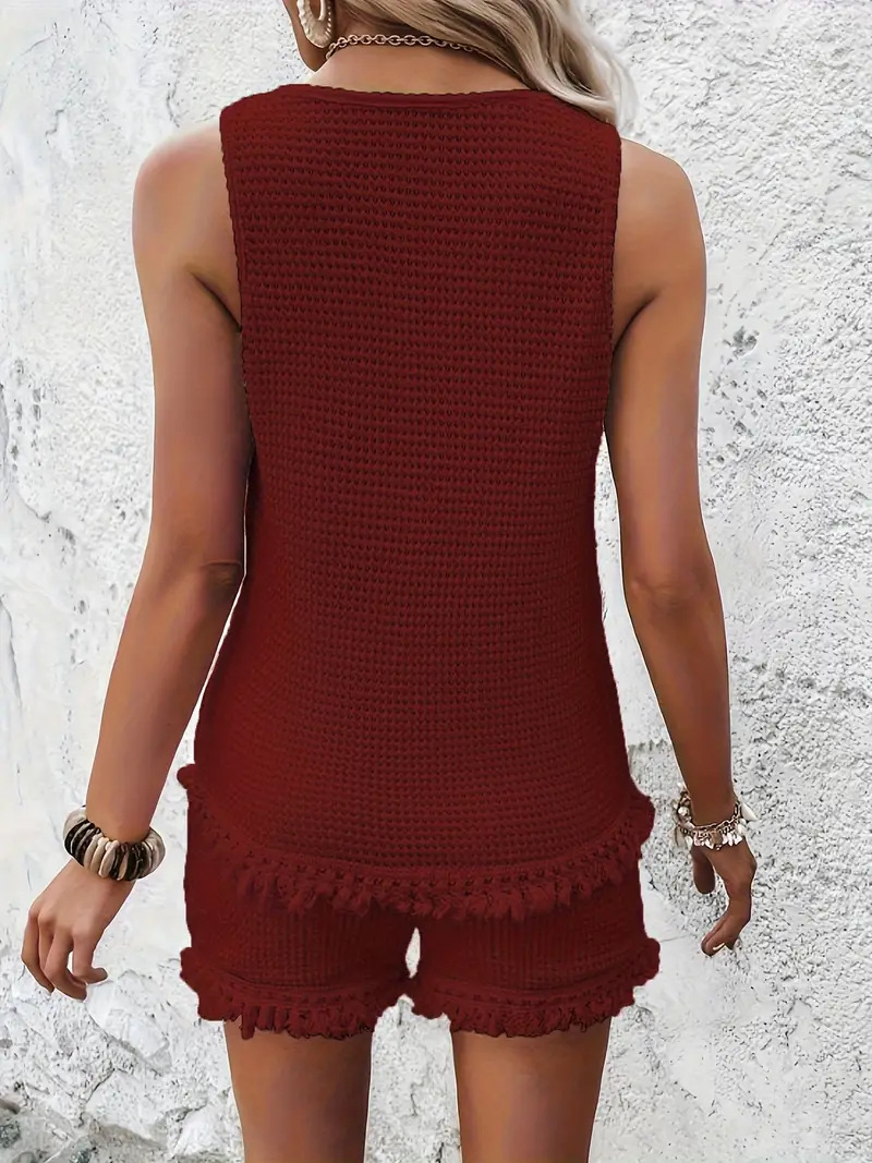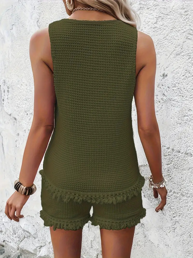 2025 新しいホーム服ヨーロッパとアメリカのタッセルアマゾン人気の外国貿易大きいサイズのベストショーツカジュアルスーツ