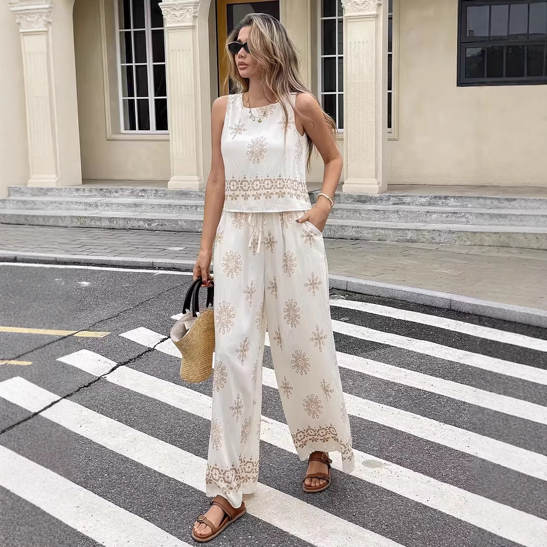 スポット2025欧米ウィッシュ人気独立局クロスボーダーアマゾンノースリーブトップスとパンツ高級2点セット