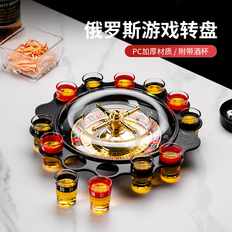 12孔俄罗斯轮盘转转乐透明酒杯游戏KTV轮盘游戏酒杯转盘酒吧KTV