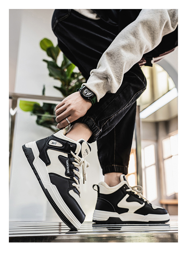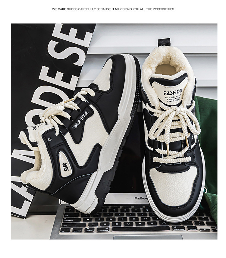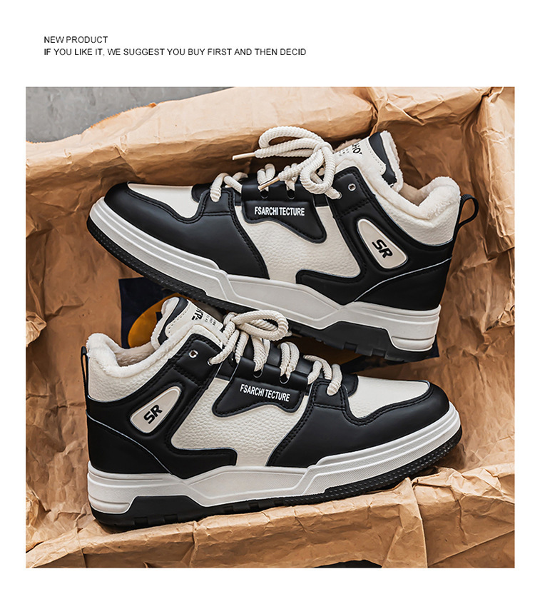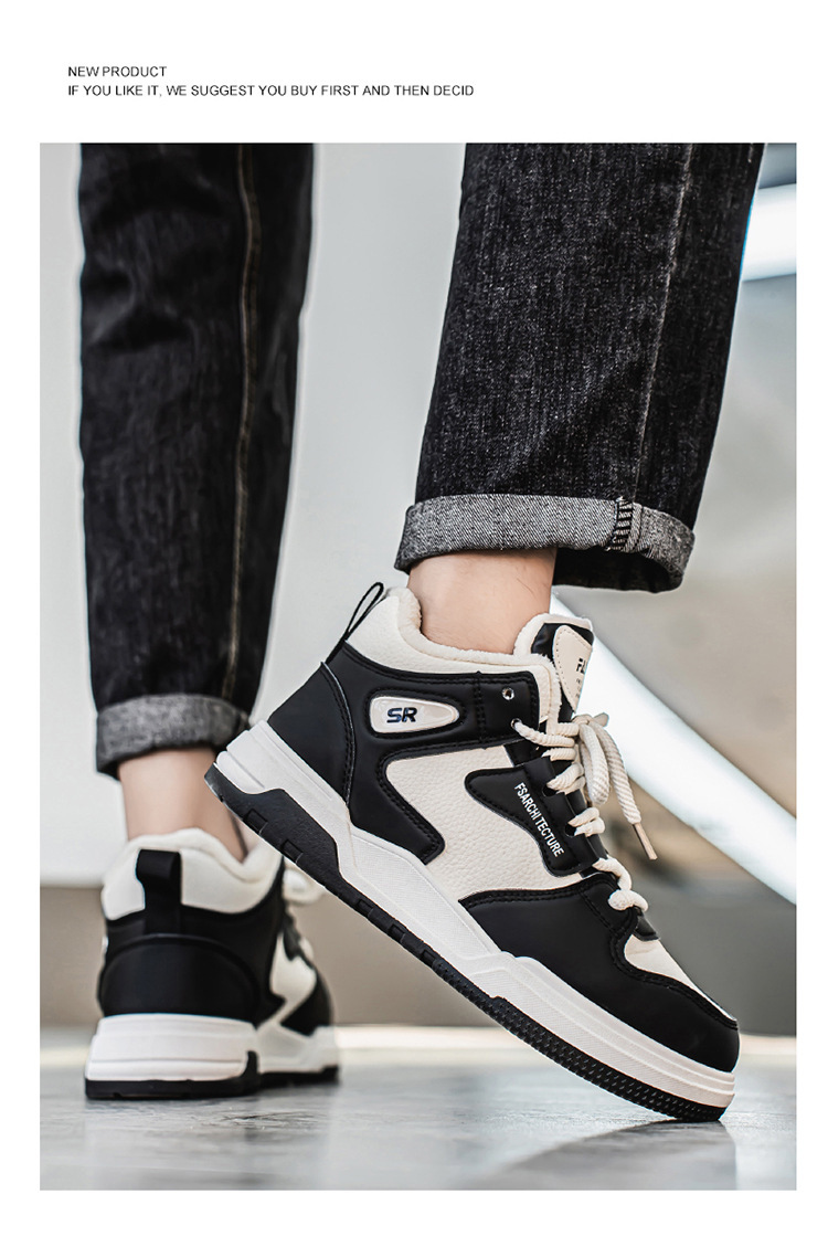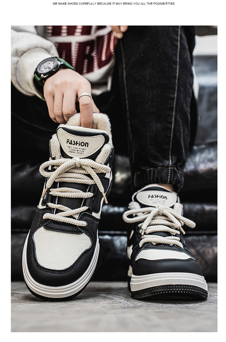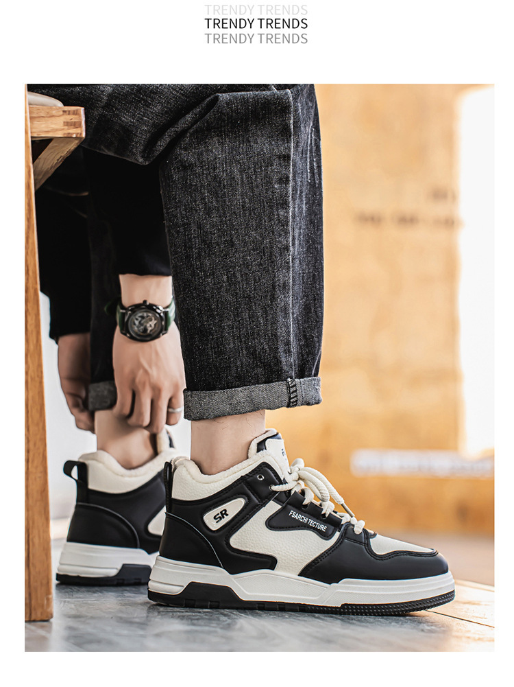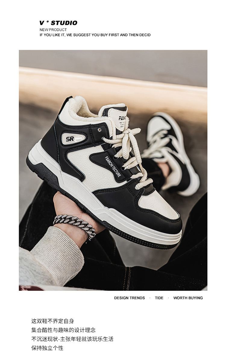 冬季男鞋加绒高帮鞋子男款潮流百搭加厚保暖棉鞋厚底运动老爹鞋男