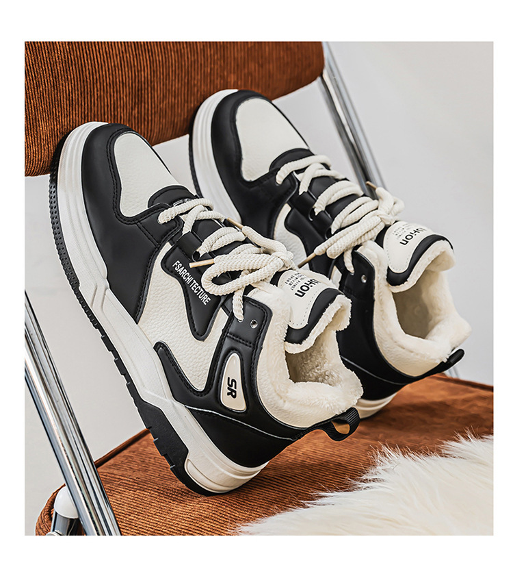 冬の男の靴の新型の高組のベルベットの白い靴の男の潮流は厚い底の厚い保温の綿の靴の運動の板の靴を合わせます。