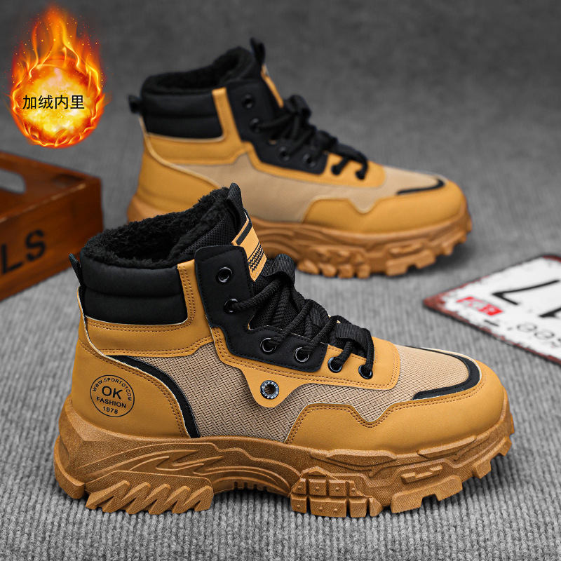 高組馬丁靴男靴冬にベルベットの工装靴男の潮流は厚い底で保温綿靴のショートブーツを厚くしている