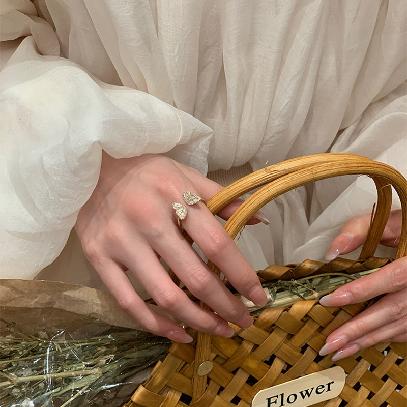Mezzo満ドリルジルコン超フラッシュ高級感小衆軽贅沢オープンリングは夢の気質ファッションリングを調節できる