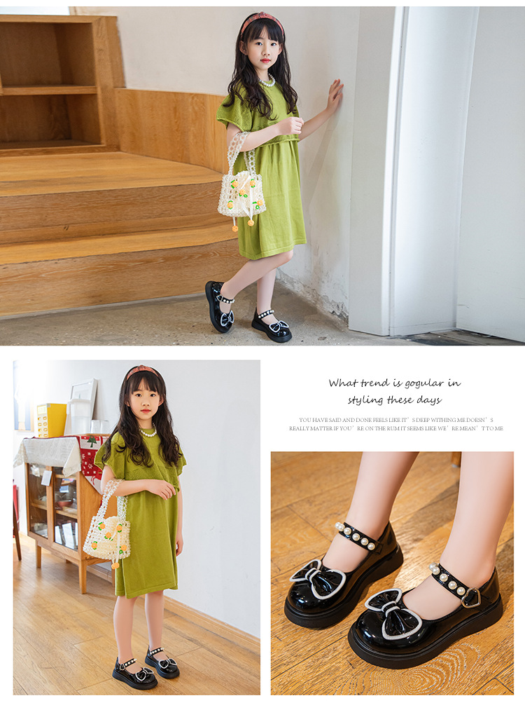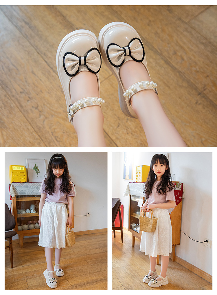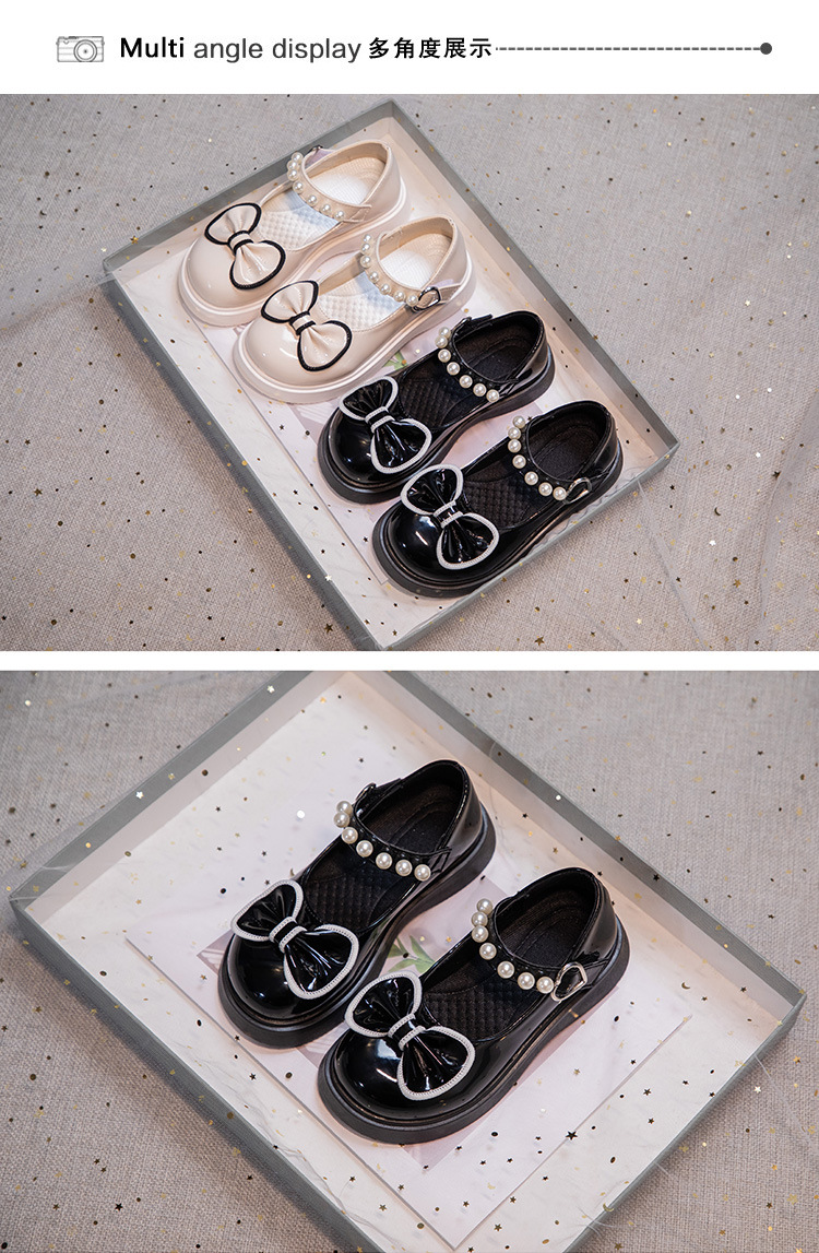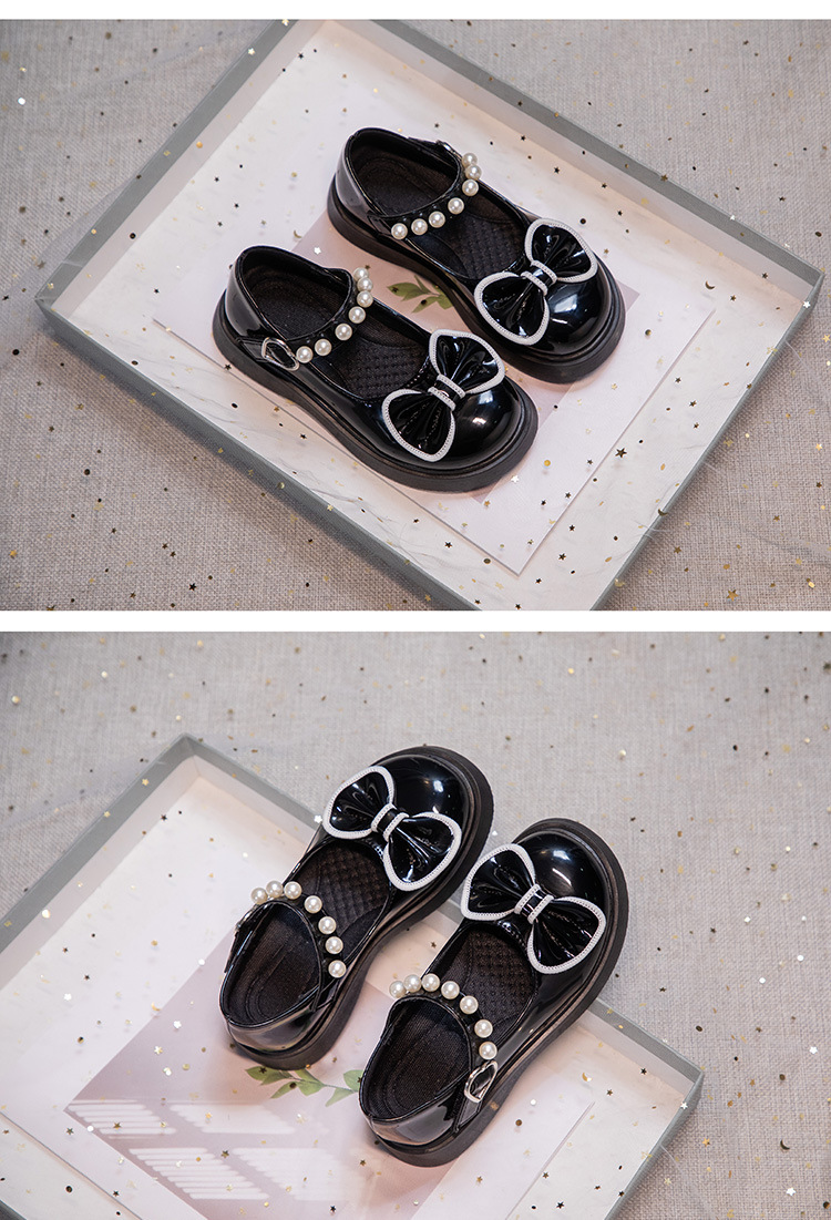 子供の英倫風の小さい靴の2024の新型の女の子の漆の皮の蝶結びの王女の靴の小さい女の子の柔らかい底のショーの靴