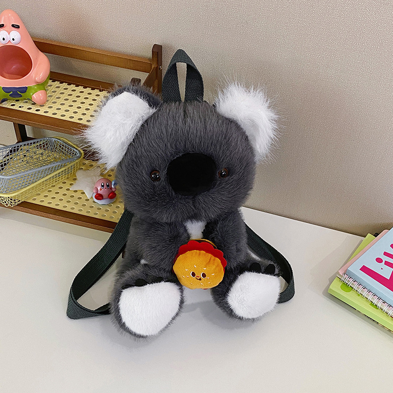 かわいいぬいぐるみバックパックバッグ黒ナマケモノ人形バッグコアラ人形バッグアウトドア旅行小さなバックパック通勤バッグ