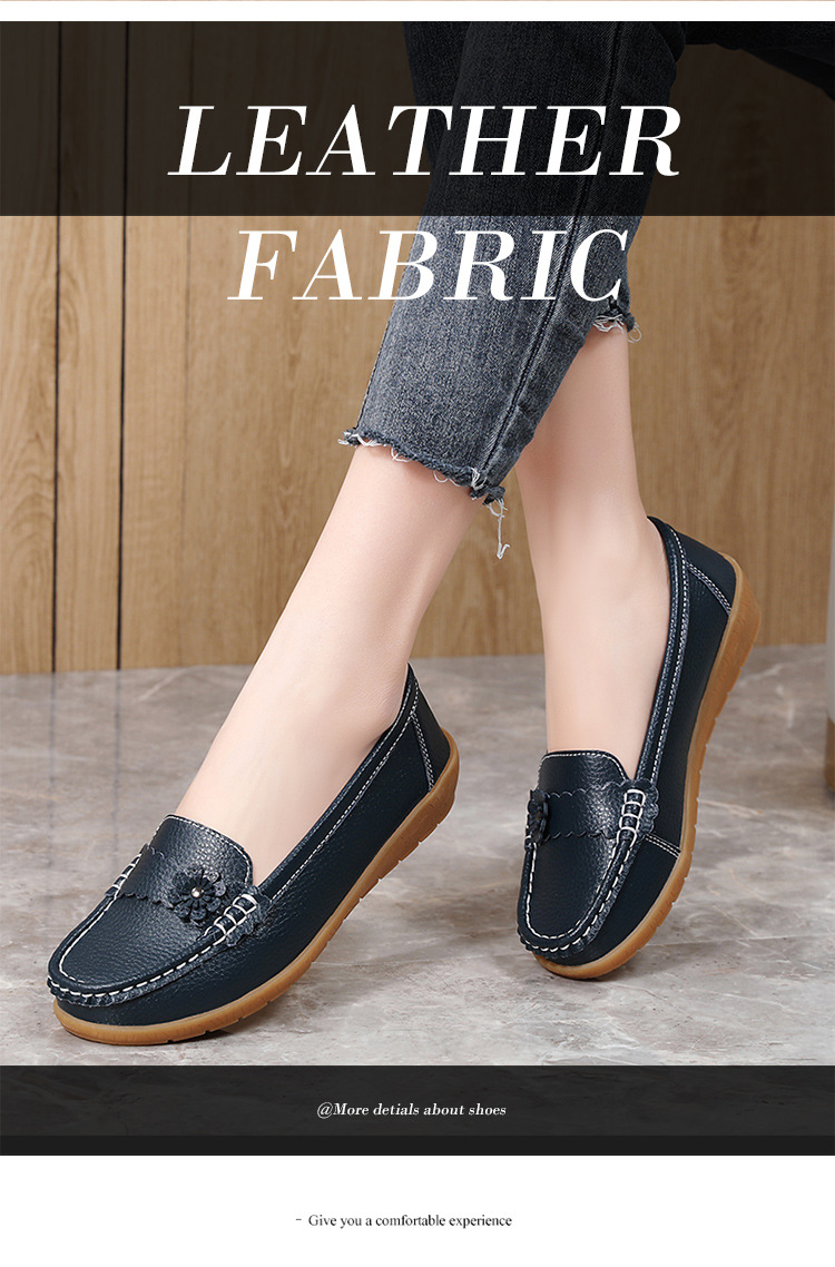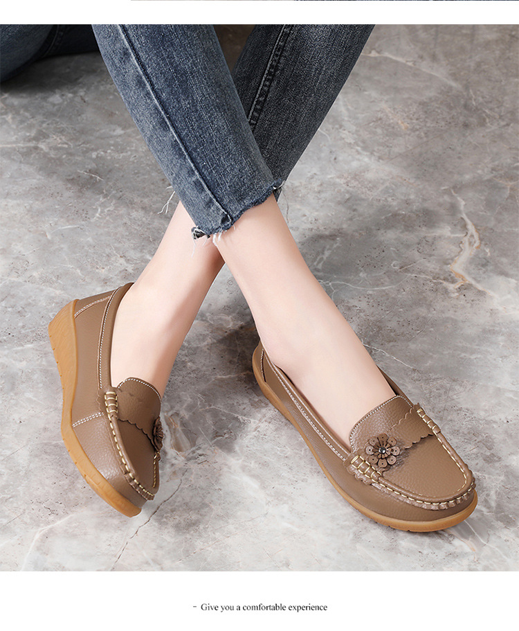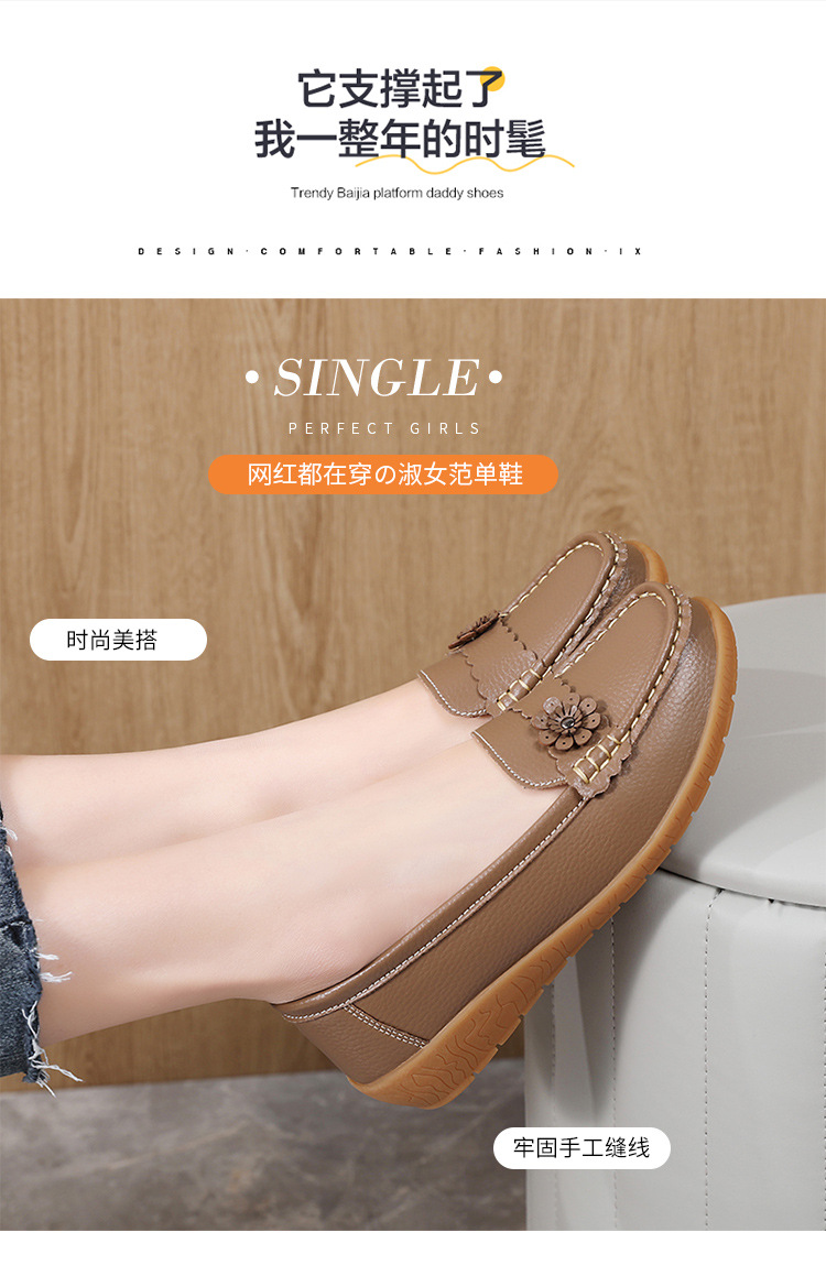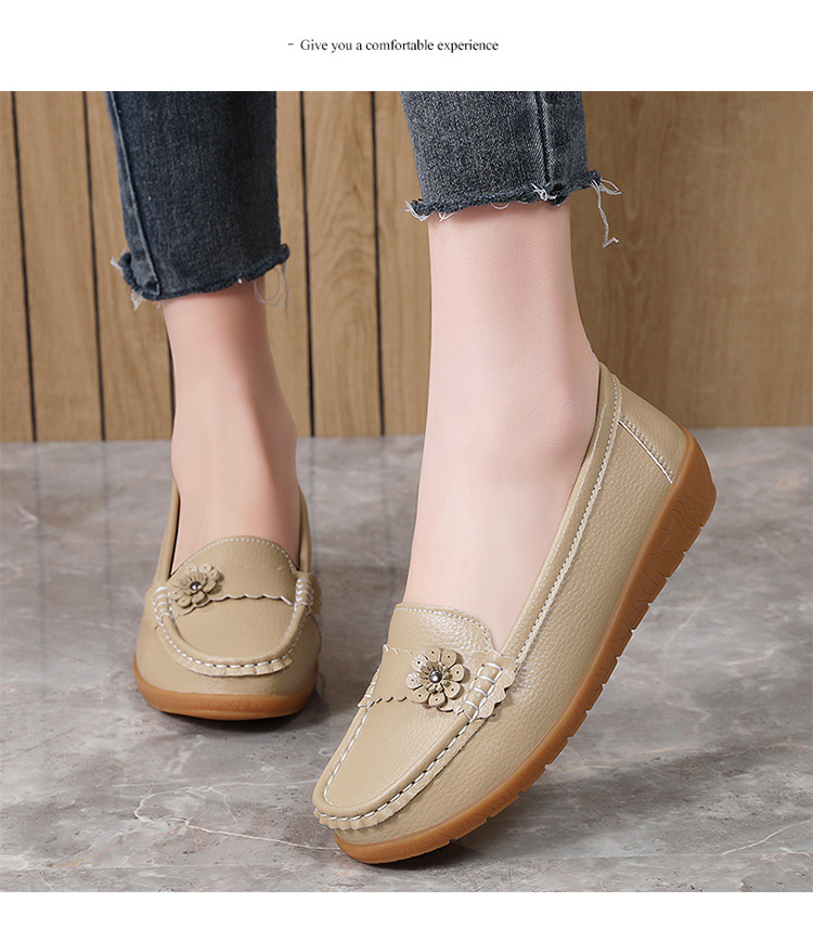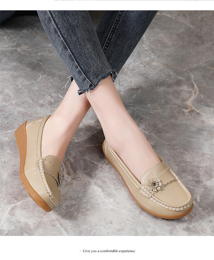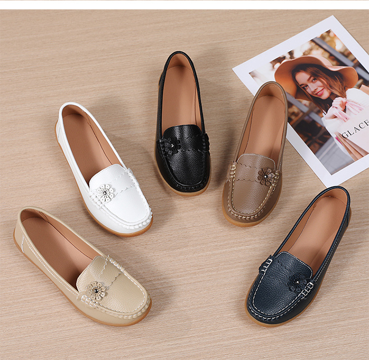 春のお母さんの靴の靴の女性の平底の女性の豆の靴の本革の平と柔らかい底の靴の大きいサイズの越境の対外貿易の女性の靴