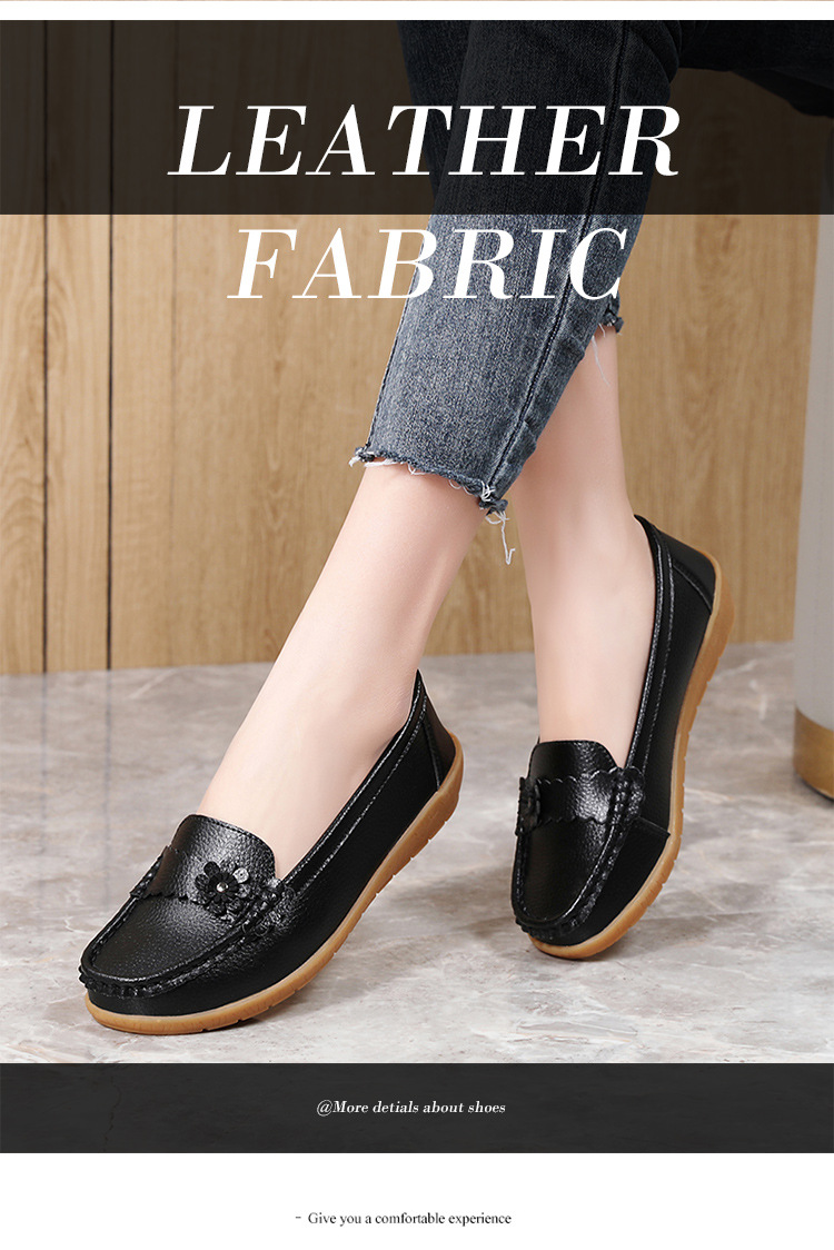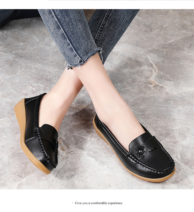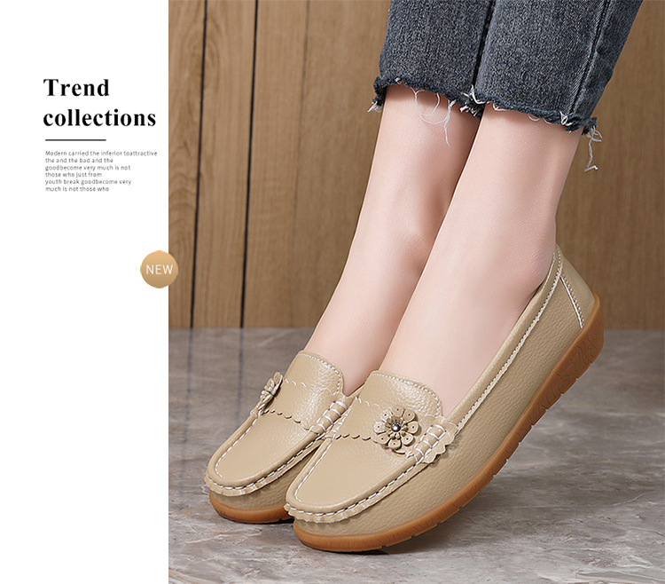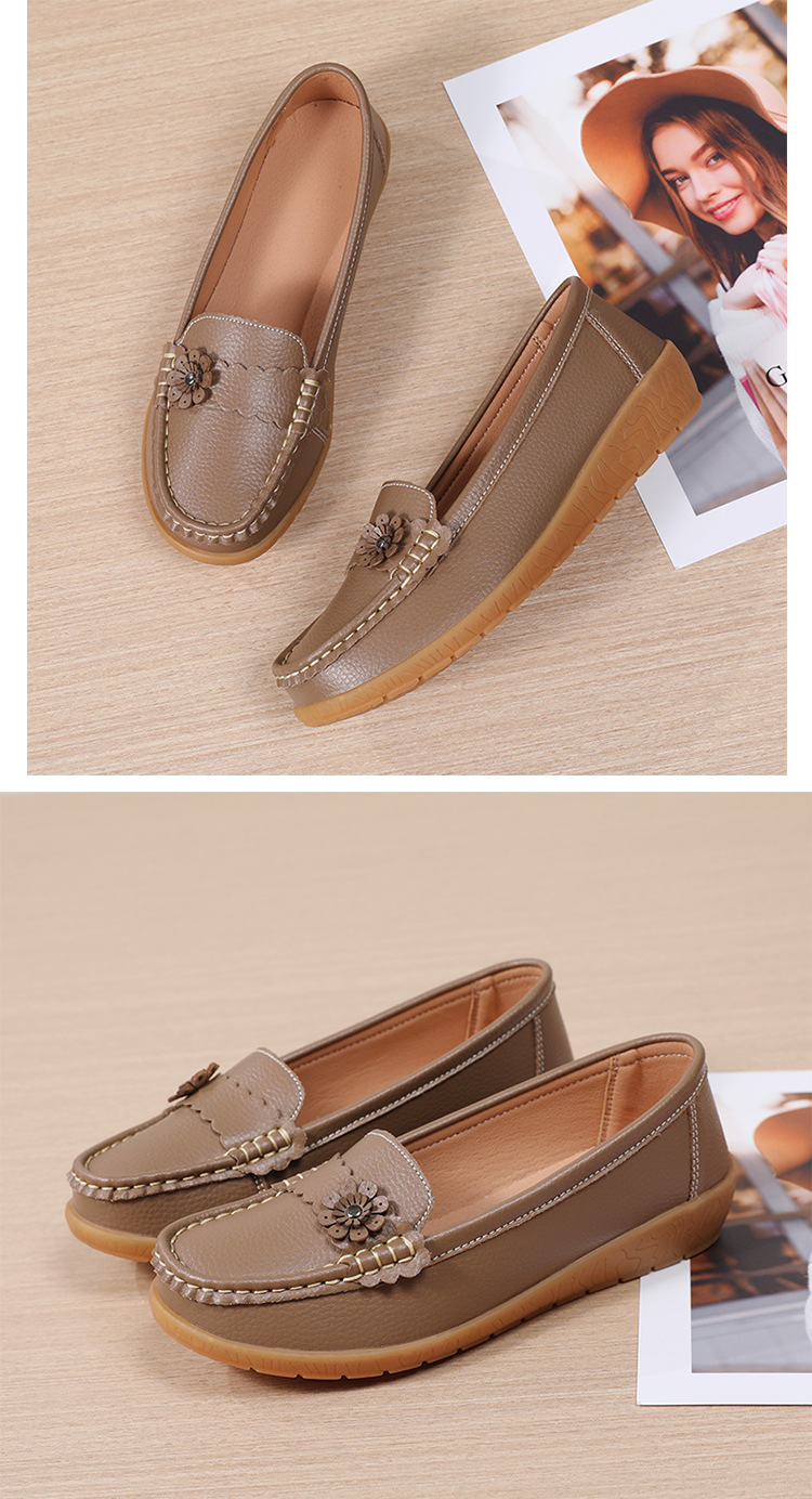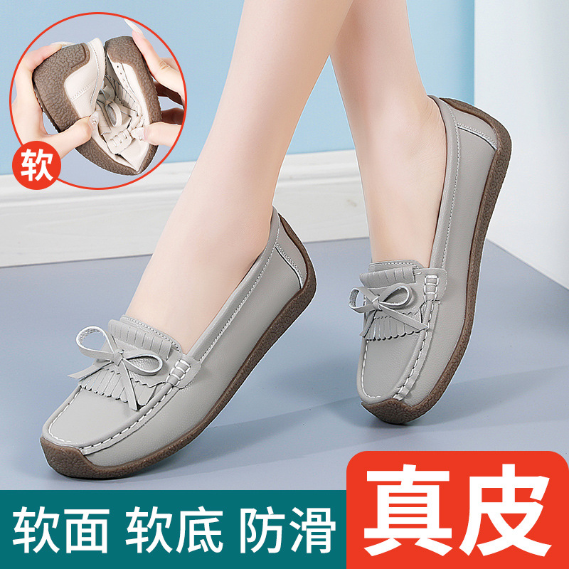春のお母さんの靴の靴の女性の平底の女性の豆の靴の本革の平と柔らかい底の靴の大きいサイズの越境の対外貿易の女性の靴