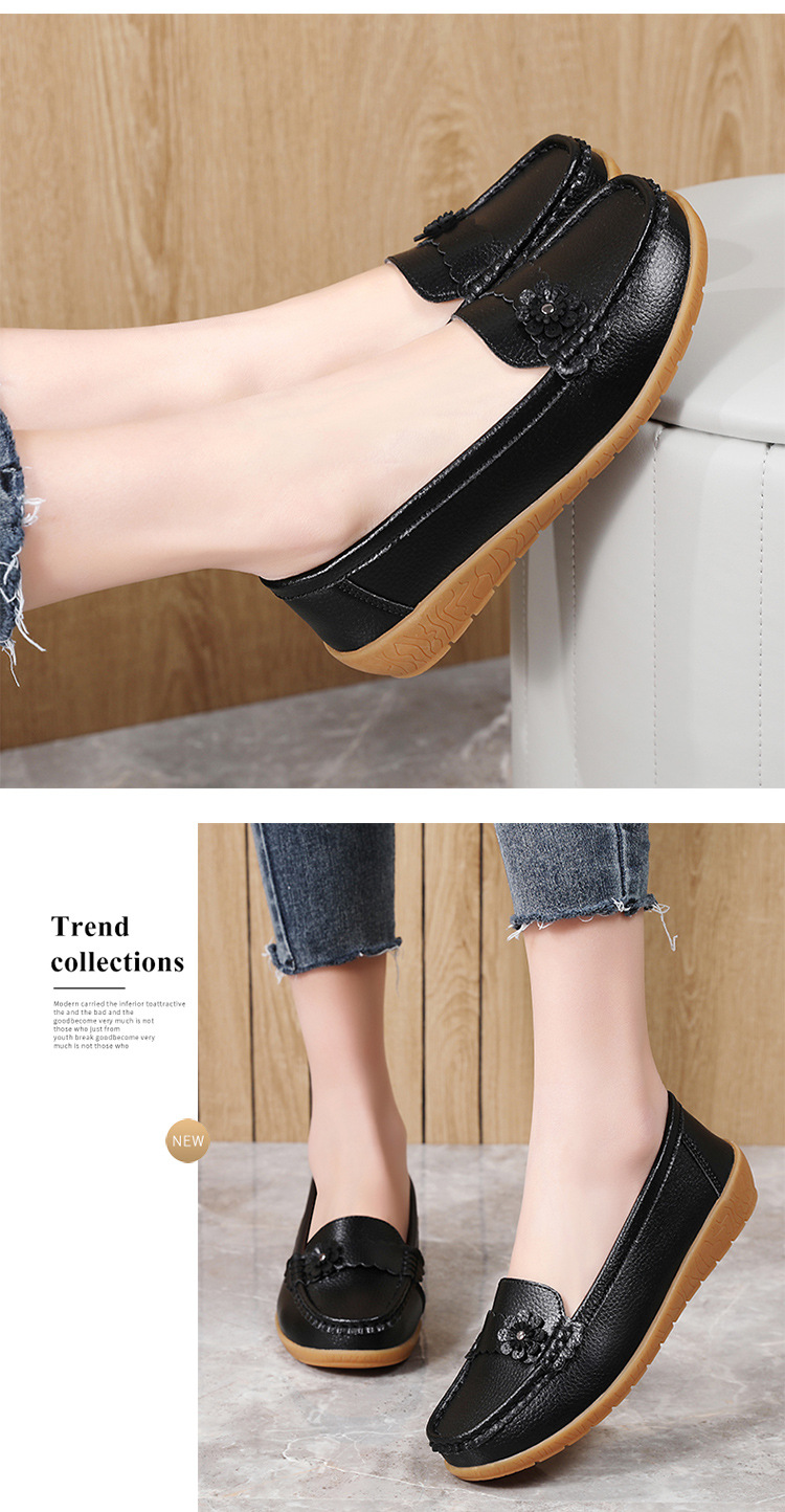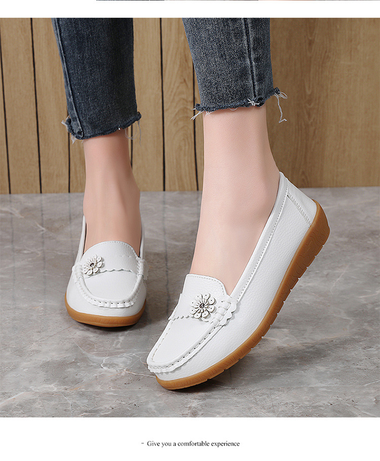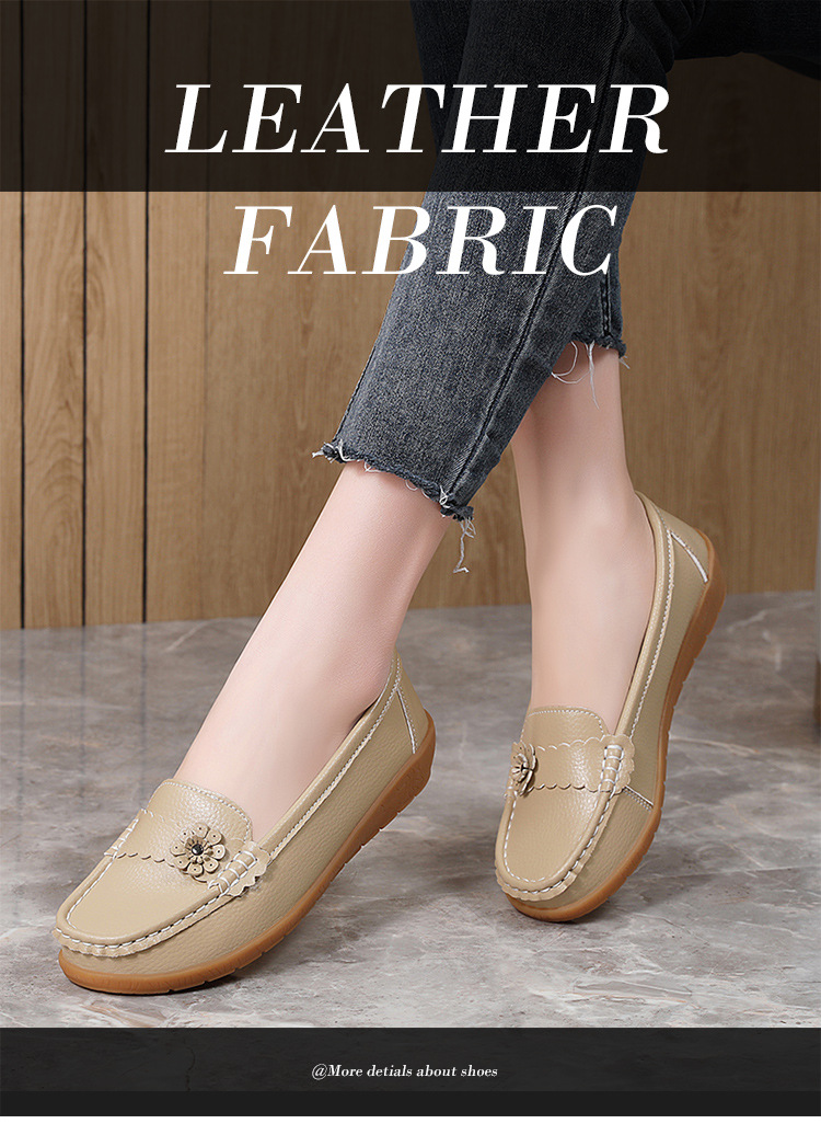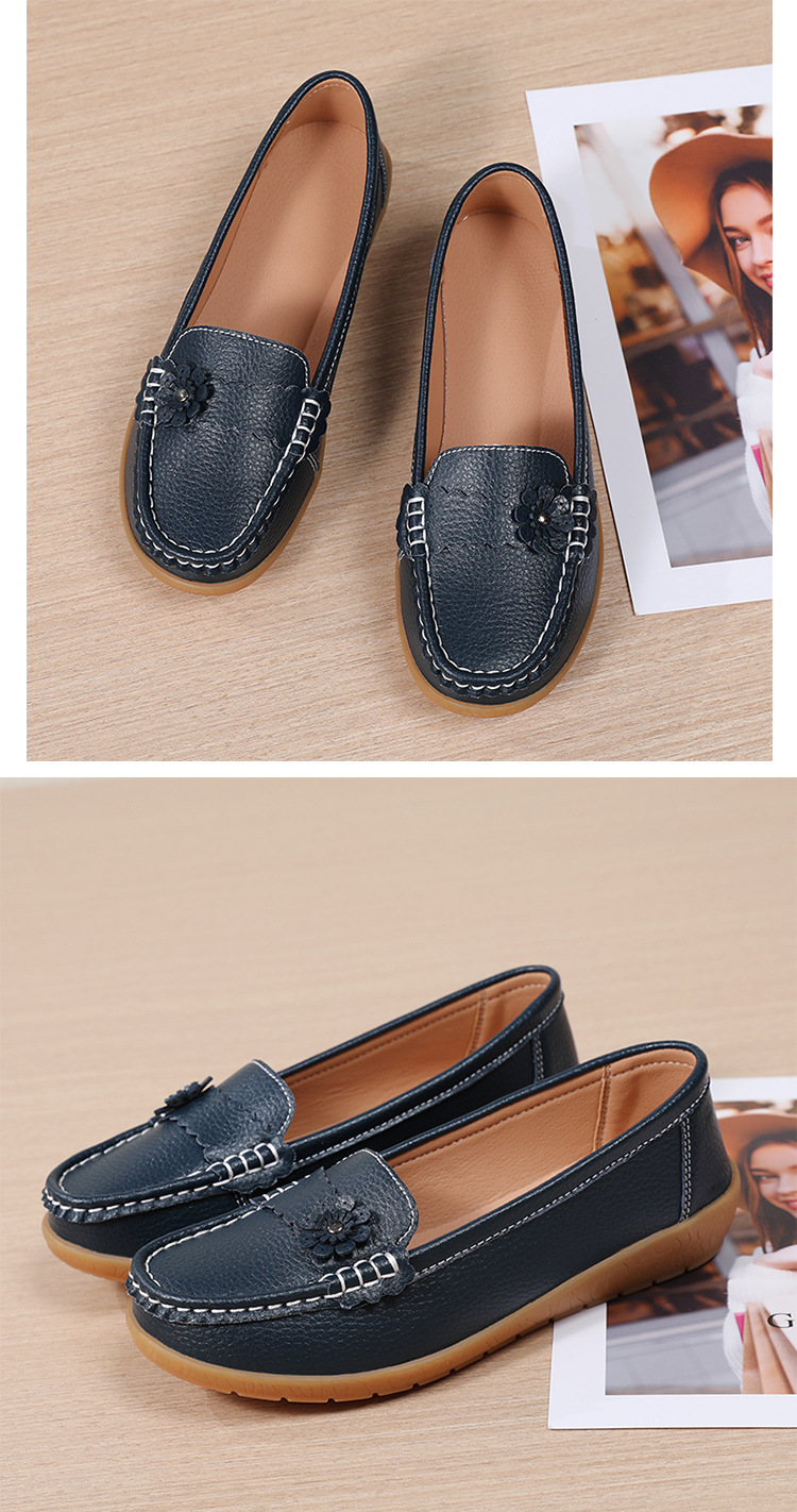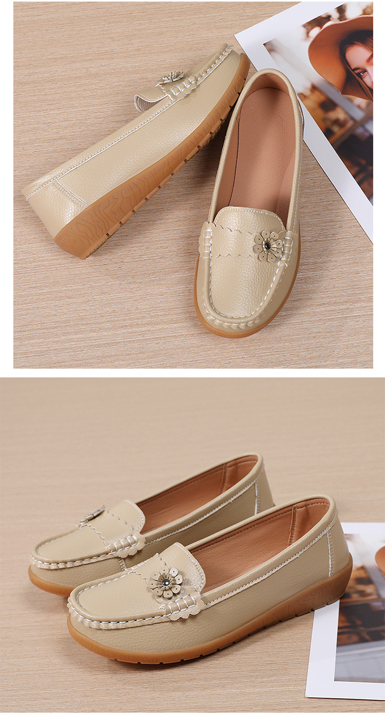春のお母さんの靴の靴の女性の平底の女性の豆の靴の本革の平と柔らかい底の靴の大きいサイズの越境の対外貿易の女性の靴
