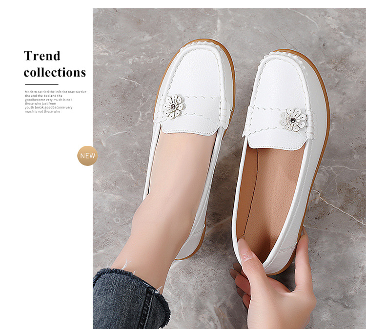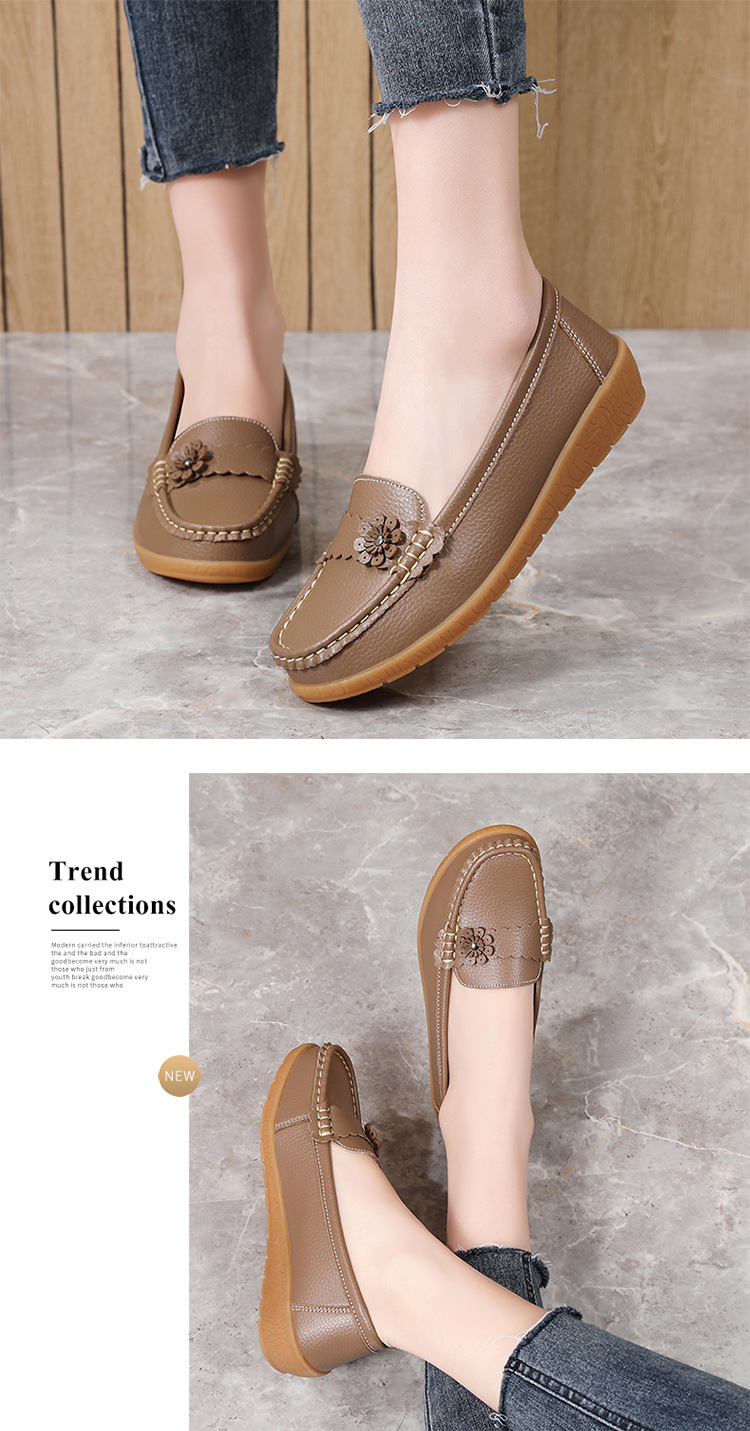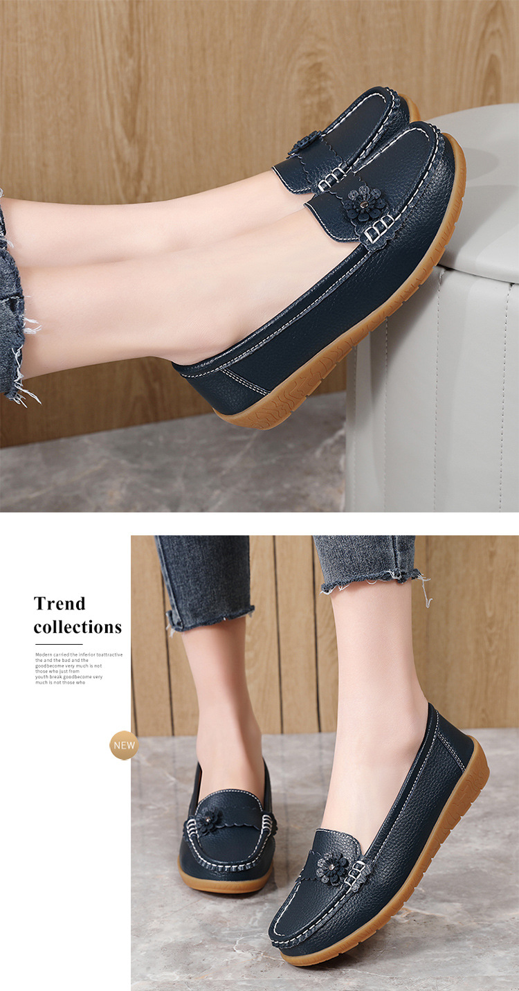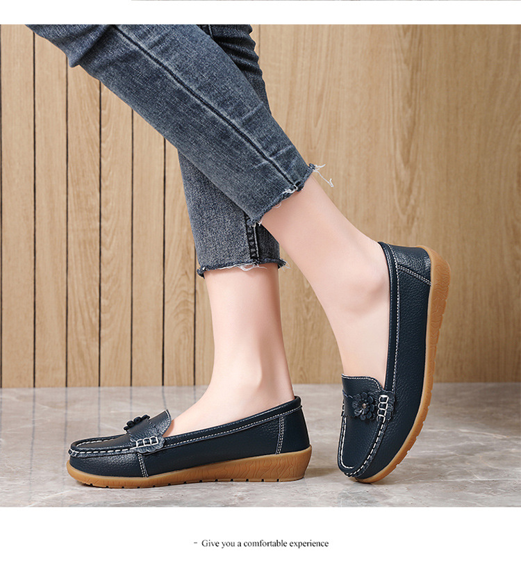 外国貿易の女性靴の秋のレジャーのお母さんの靴の本革の柔らかい底の豆の靴の耐摩耗性の滑り止めの百合のカジュアルな靴の大きいサイズ