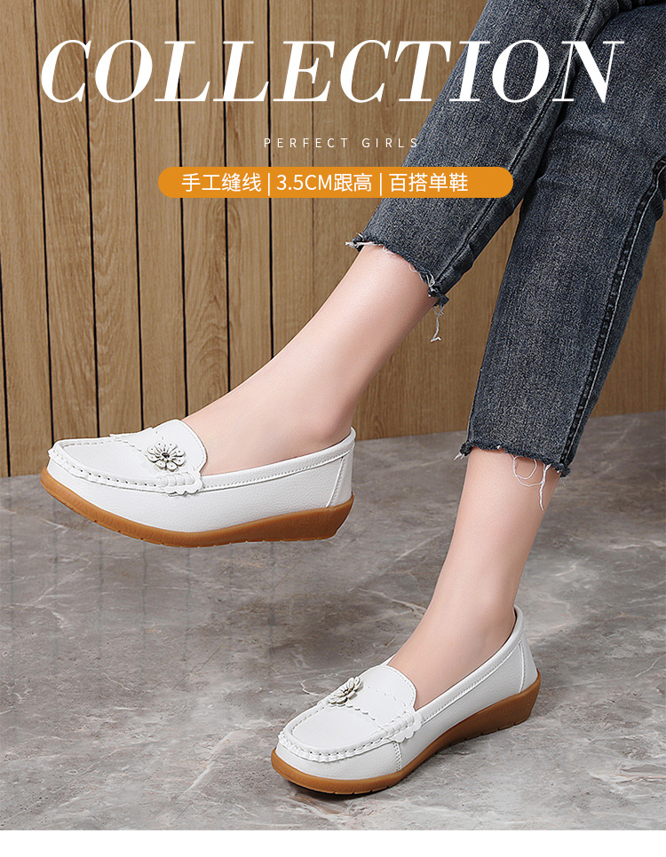 夏秋の日常に快適で万能なママシューズ、豆豆シューズ、ローファー、ウェッジヒール、滑り止め付きレディースシューズ、通勤・仕事用レディースシューズ
