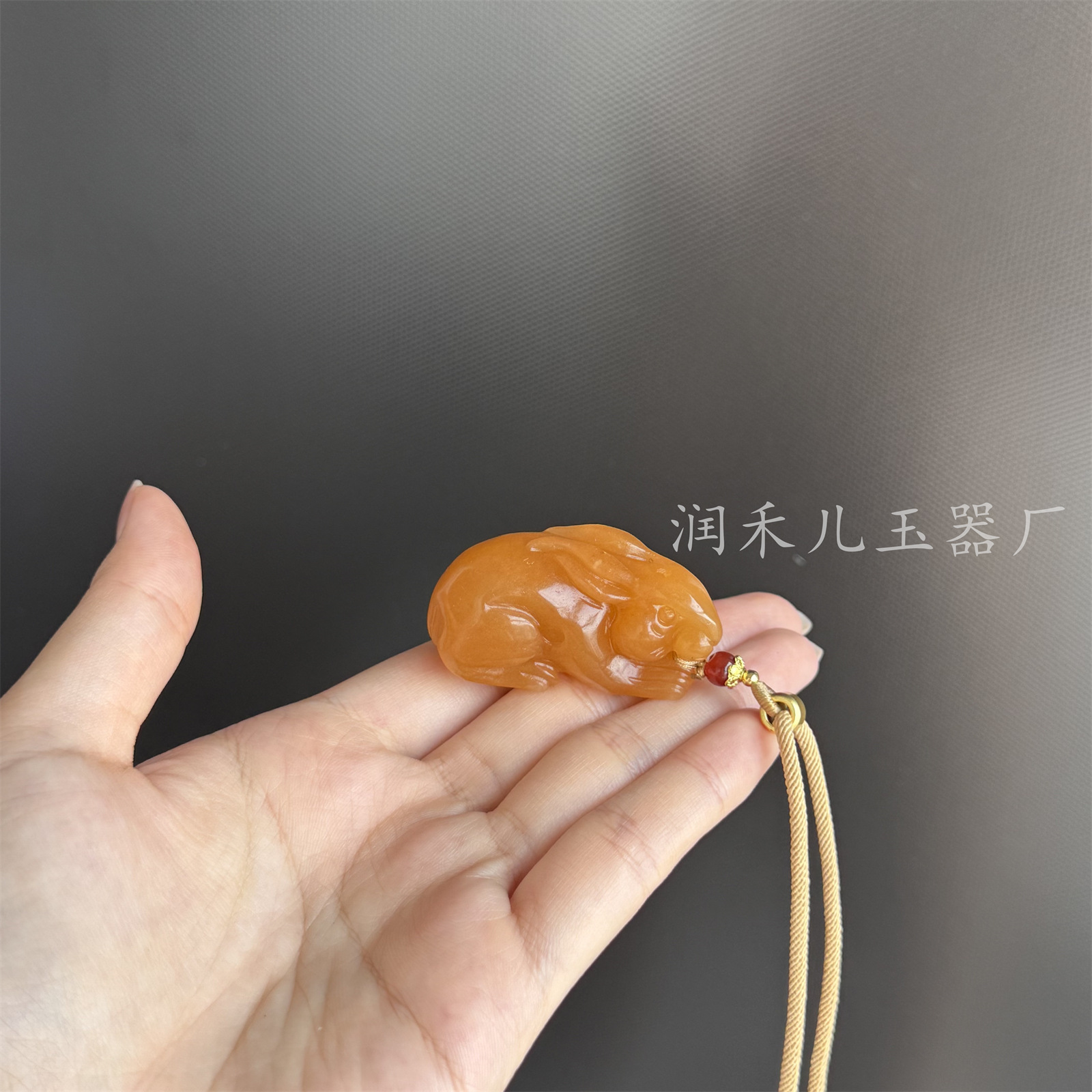 一件代发天然云南黄龙小兔子挂件鸡油黄立体生肖兔黄龙玉吊坠可证