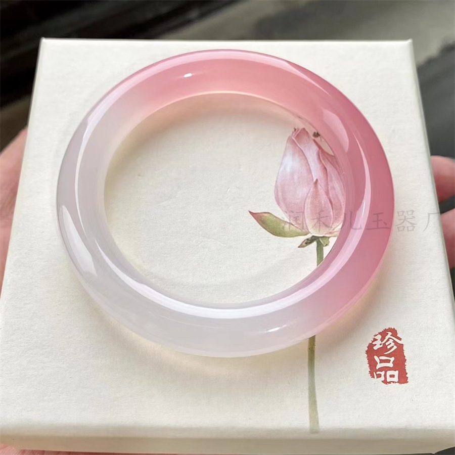 氷種桜花粉美人腕輪チューリップ半白半粉グラデーション色玉髄腕輪桃の早死瑪瑙玉腕輪