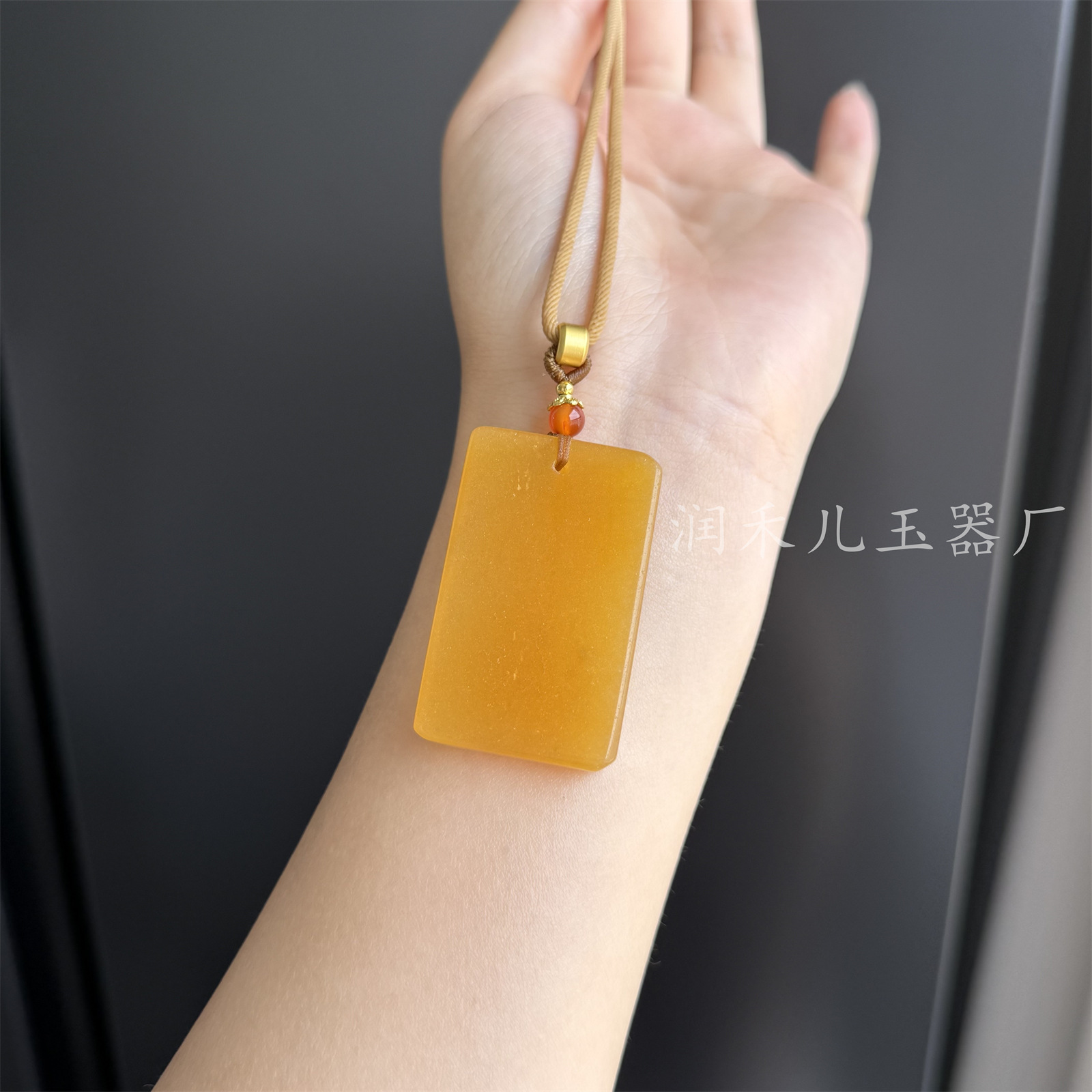 一件代天然云南黄龙玉平安无事牌挂件鸡油黄无字光面牌黄龙玉吊坠
