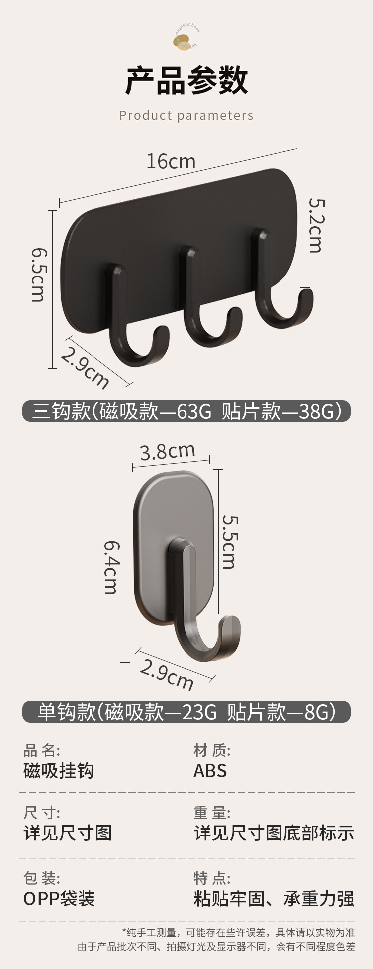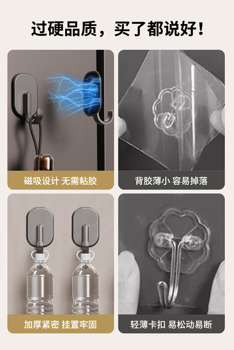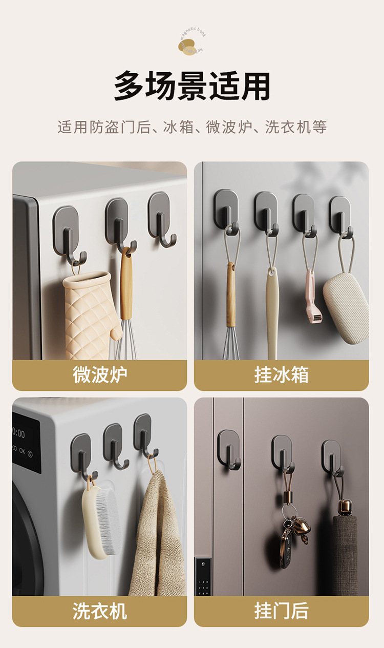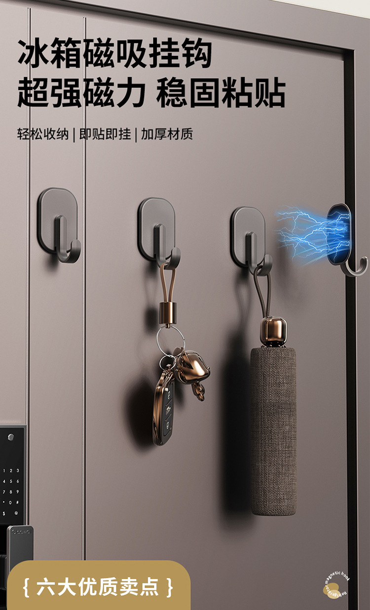 冰箱磁铁挂钩磁吸贴排钩厨房铁防盗门衣钩壁挂免打孔卫生间置物架