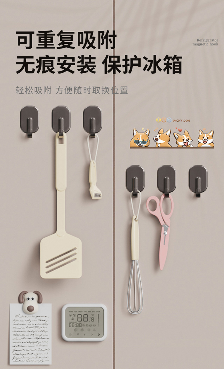 メーカー磁気冷蔵庫フック強力な吸引痕跡フックパンチフリー磁気フックキッチン収納フック卸売