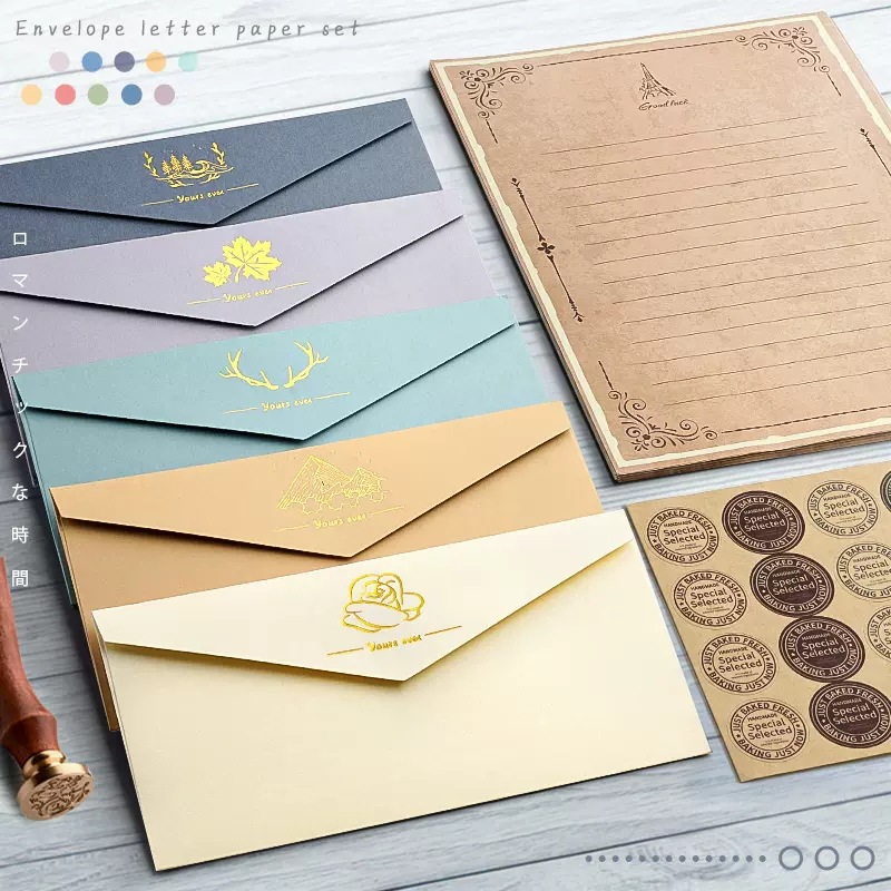 レトロなカラー封筒の便箋セットは裏紙のアイデアを決めます。