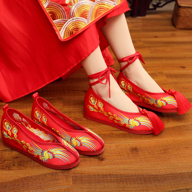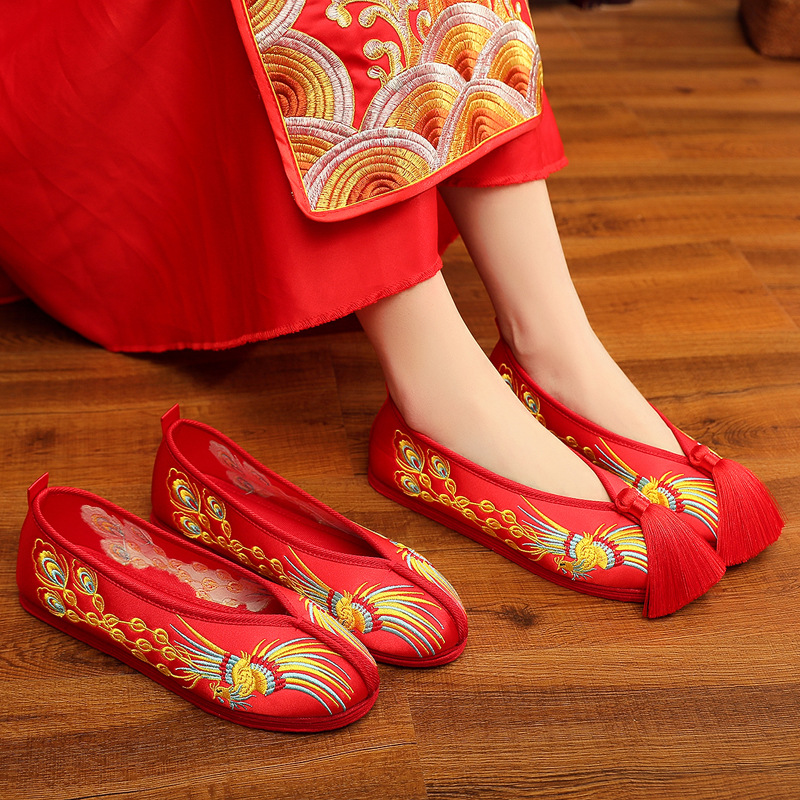 メーカー直供秀禾結婚靴中国式結婚式花嫁結婚靴赤い平底刺繍靴レトロ結婚式布靴