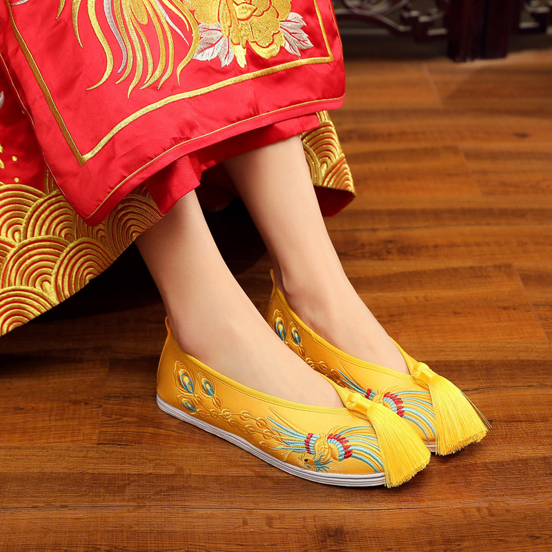 工場は黄色の秀禾靴の結婚靴を提供しています。