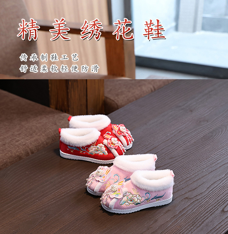 女の子刺繍靴ベルベット綿靴子供漢服靴中国風雪地靴女の子民族風古着靴