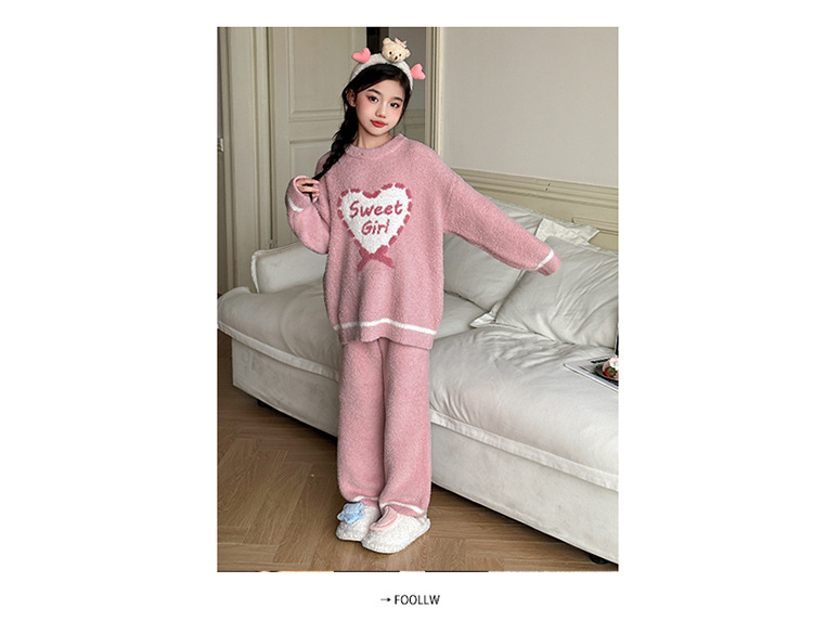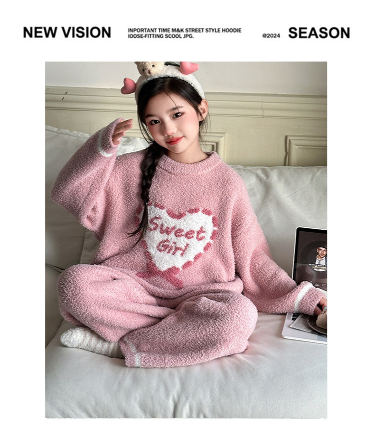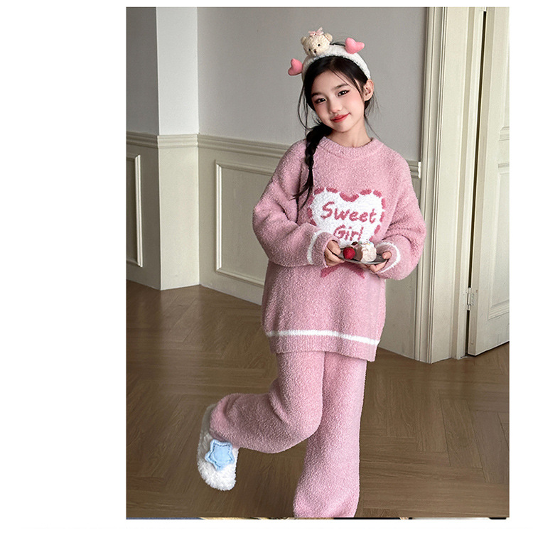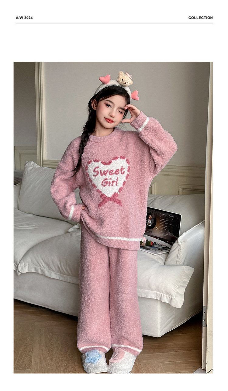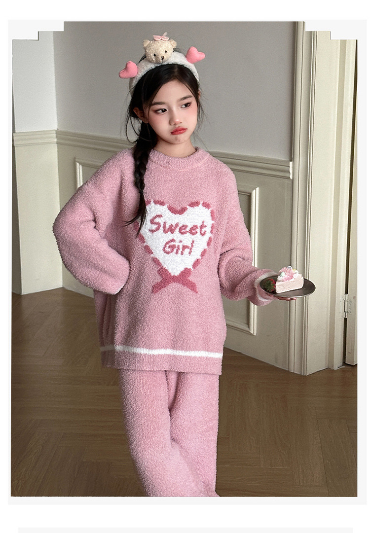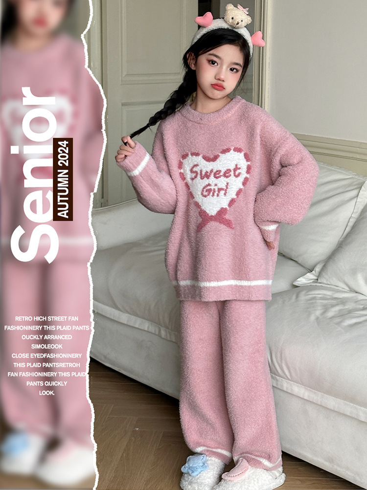 子供の家の服の秋冬の金の2024の新型のベルベットの厚い女の子の保温スーツの女の子のフランネルのパジャマカバー