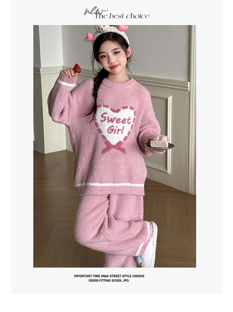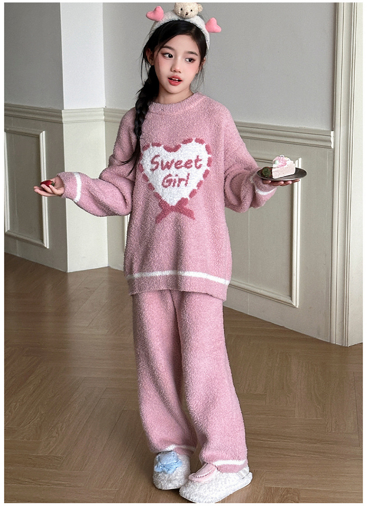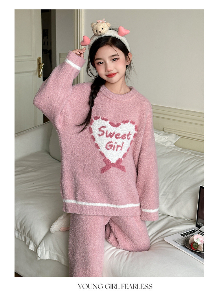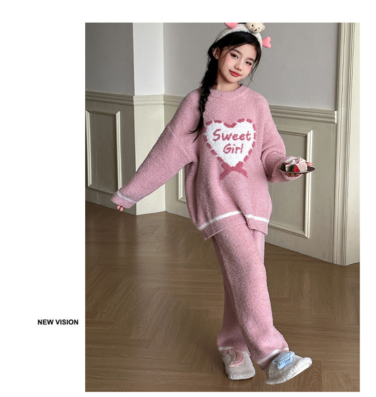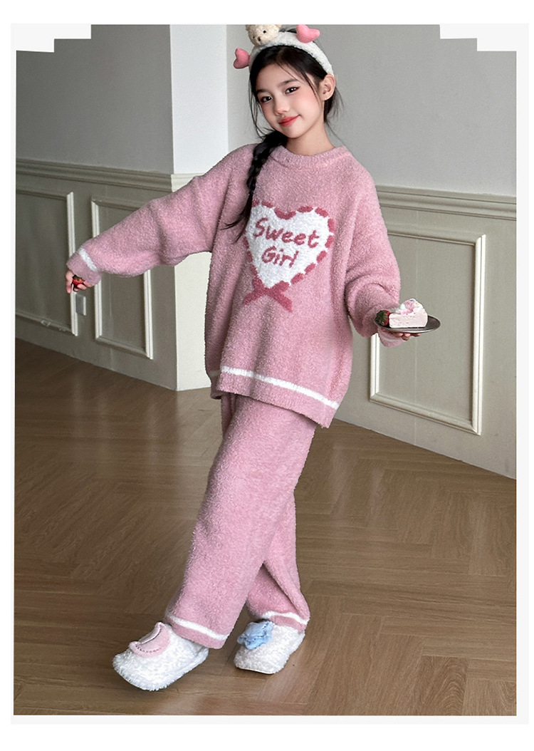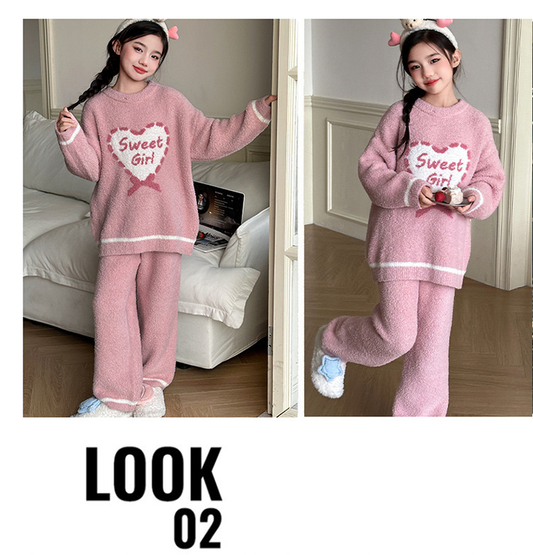 子供の家の服の秋冬の金の2024の新型のベルベットの厚い女の子の保温スーツの女の子のフランネルのパジャマカバー