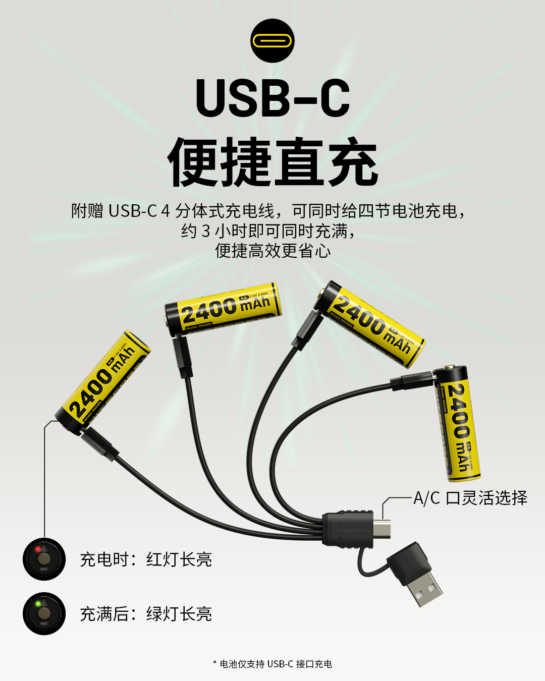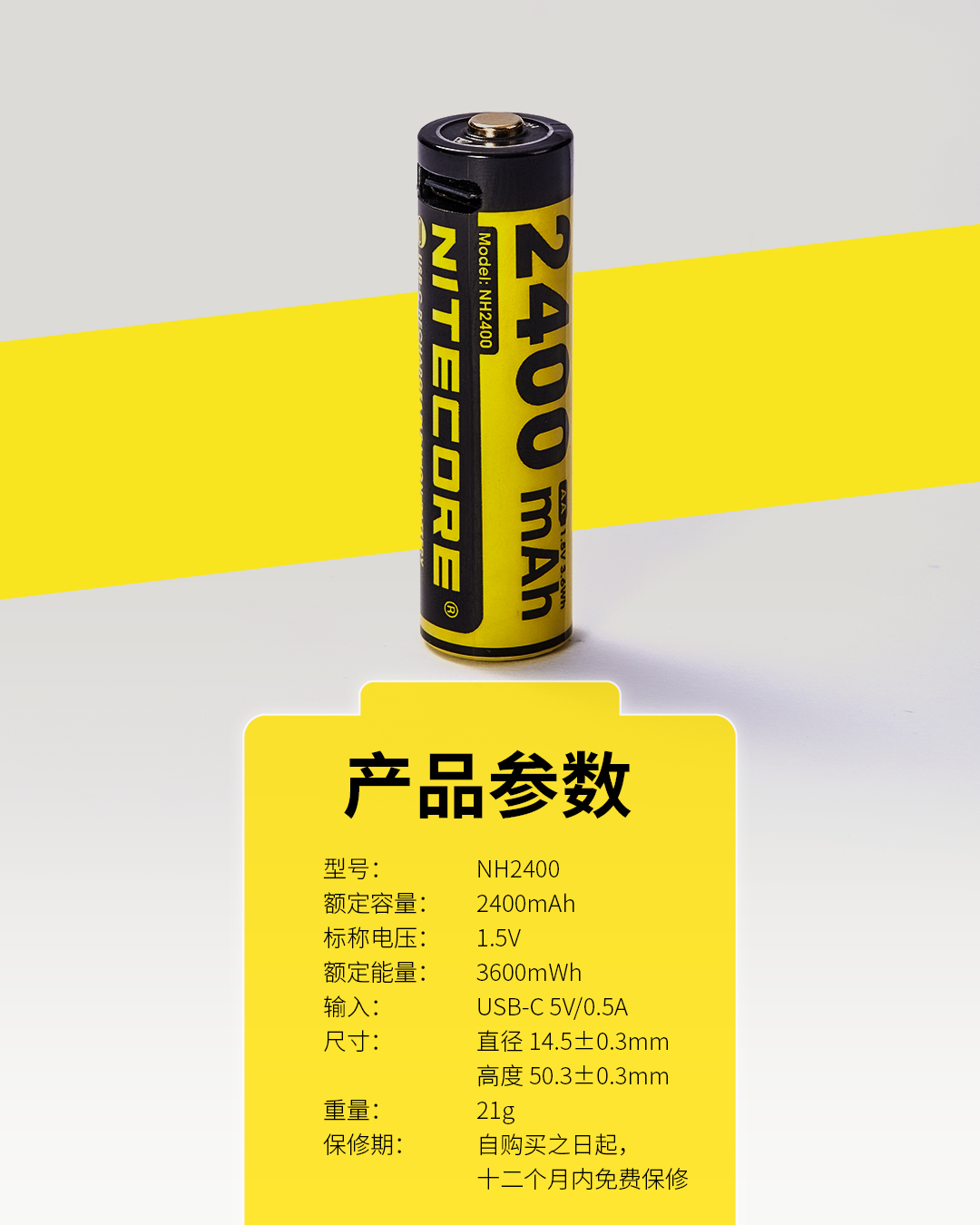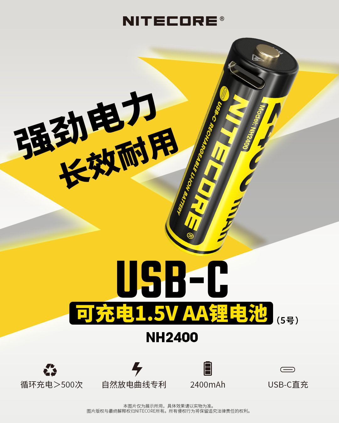 NITECOREナイトコールNH2400充電可能1.5Vリチウム電池2400mAh大容量USB-C直充