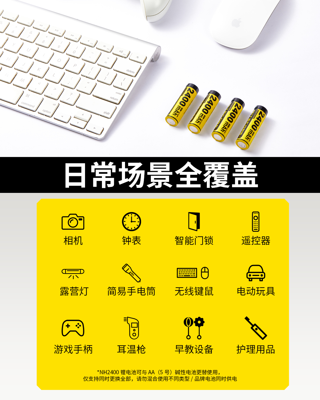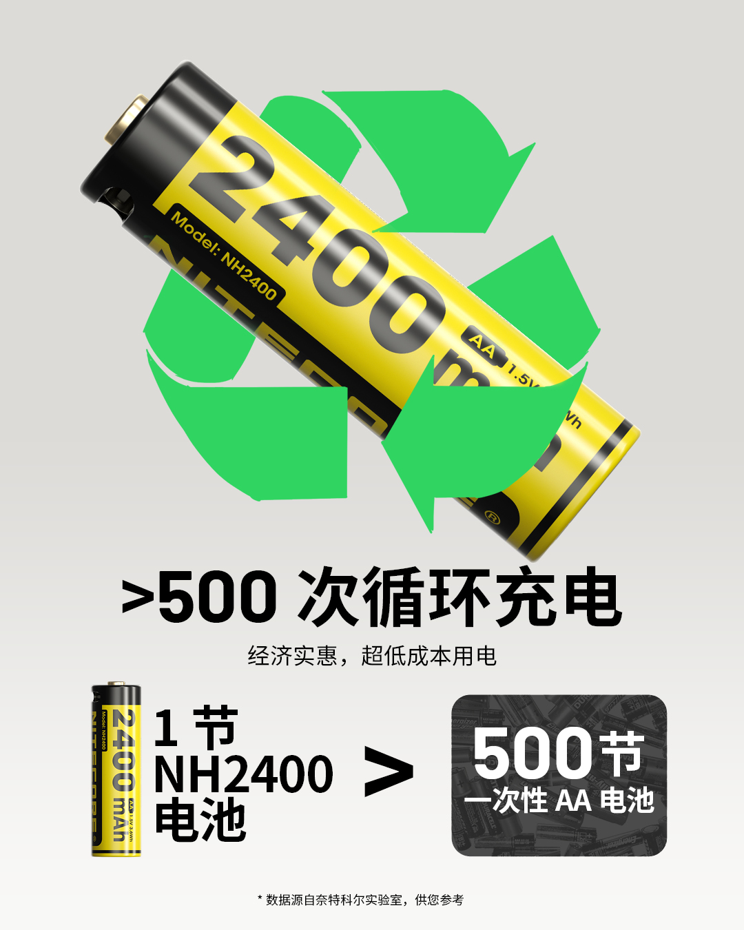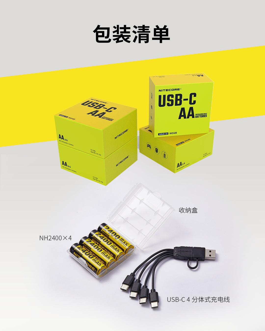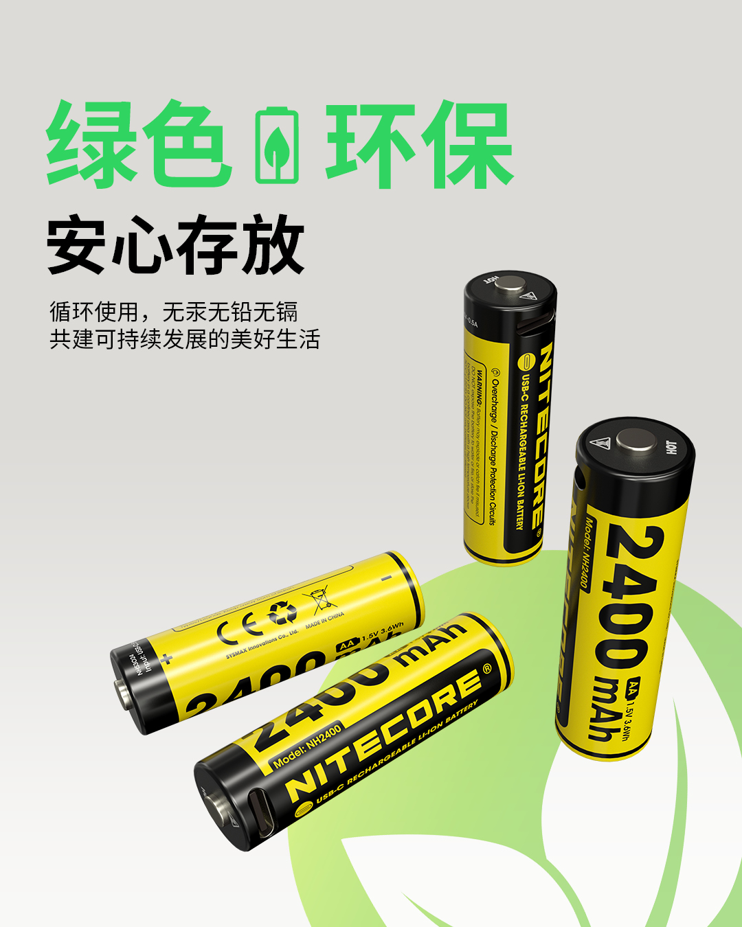 NITECOREナイトコールNH2400充電可能1.5Vリチウム電池2400mAh大容量USB-C直充
