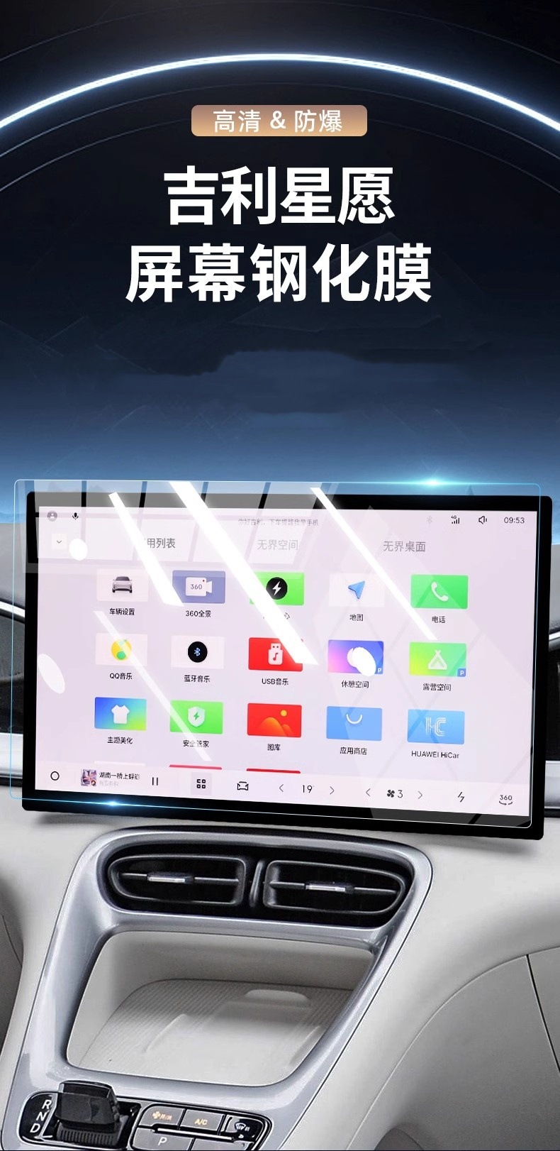 吉利スターウィッシュスクリーン強化フィルム、中央制御計器、インテリアナビゲーション保護フィルム、改造アクセサリーおよび用品に適しています。