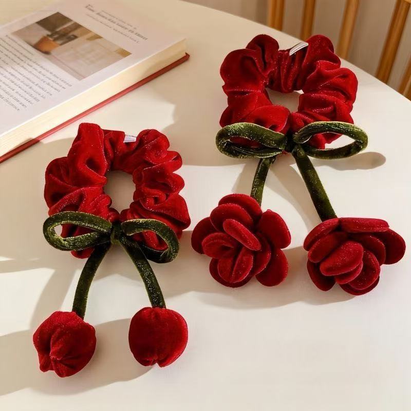 儿童春节新年圣诞红丝绒发圈花朵款蝴蝶结大肠圈秋冬少女头饰发饰