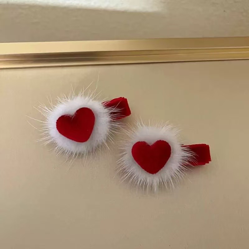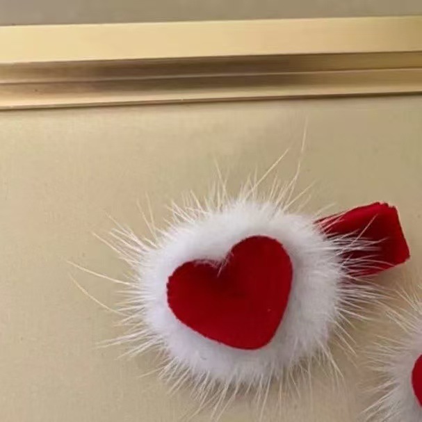 赤いぬいぐるみの星のヘアピンの女性の新年の毛がふわふわしていて、かわいい蝶結びのbbクリップのサイドの前髪クリップの髪飾りです。