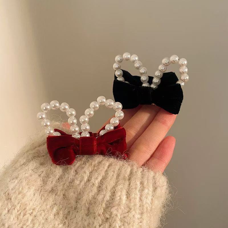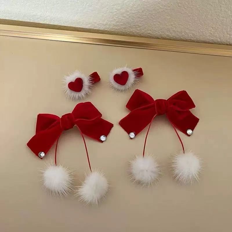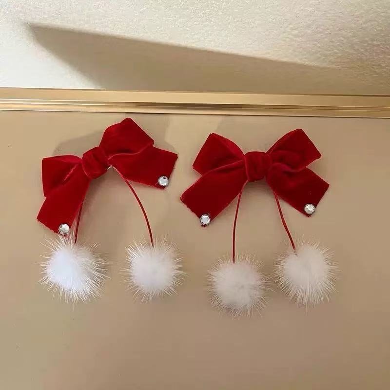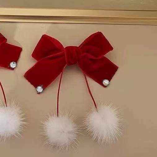 赤いベルベットの蝶結びの毛玉のヘアピン日韓の甘くてかわいい少女の双馬尾のクリップの気質の新年の髪飾り