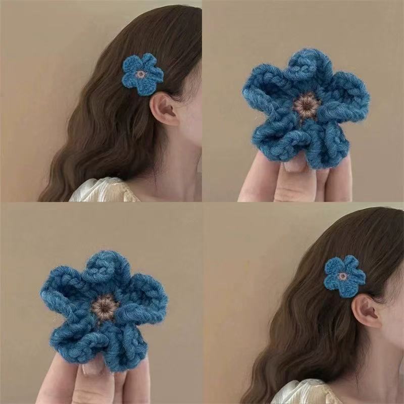 早春新作可爱い毛糸小花ヘアクリップレトロかぎ针高级感カモ口挟みサイド挟み髪饰り
