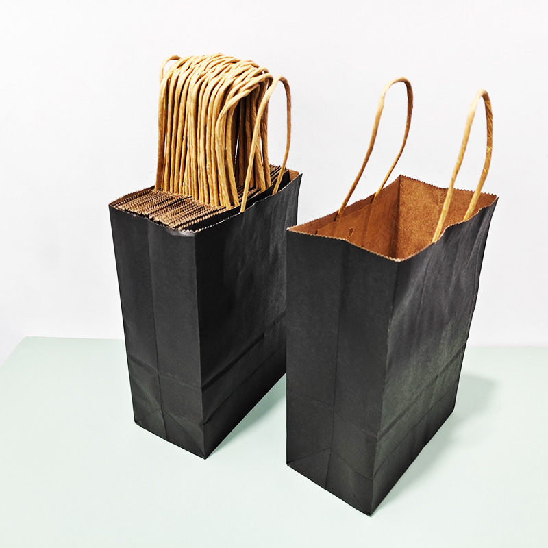黒いクラフト紙袋服装袋焙煎印刷ロゴ出前梱包服ショッピングギフト包装手提げ袋