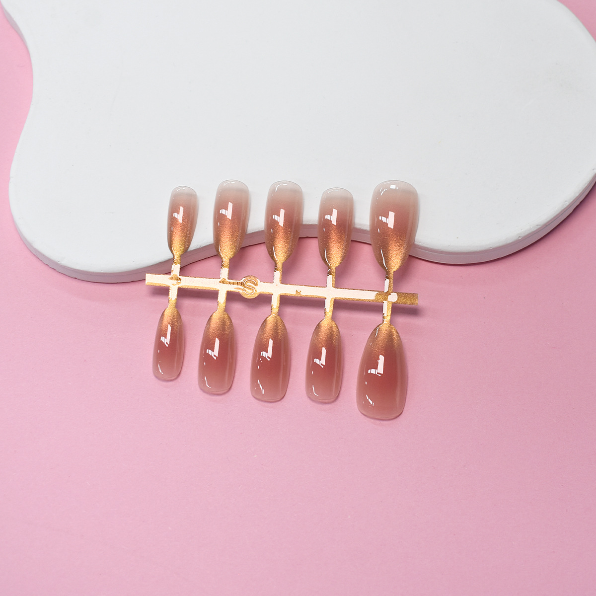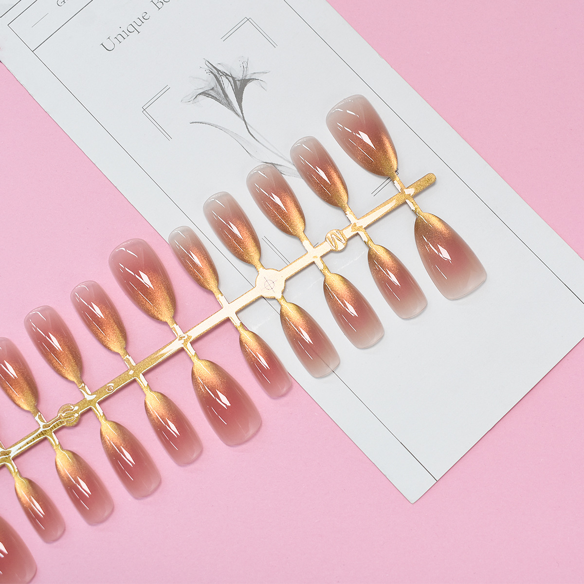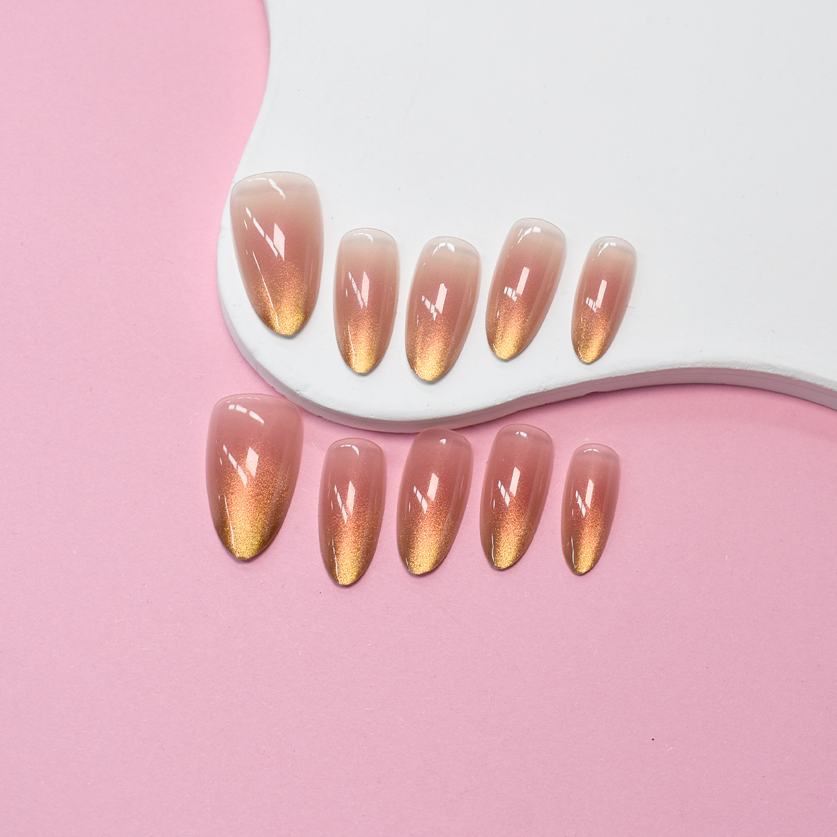 新しいチークの指先の猫の目は甲のアーモンドの形の純粋な欲の優しさの完成品の簡単なネイルアートの貼るのが自主的にDIYします。