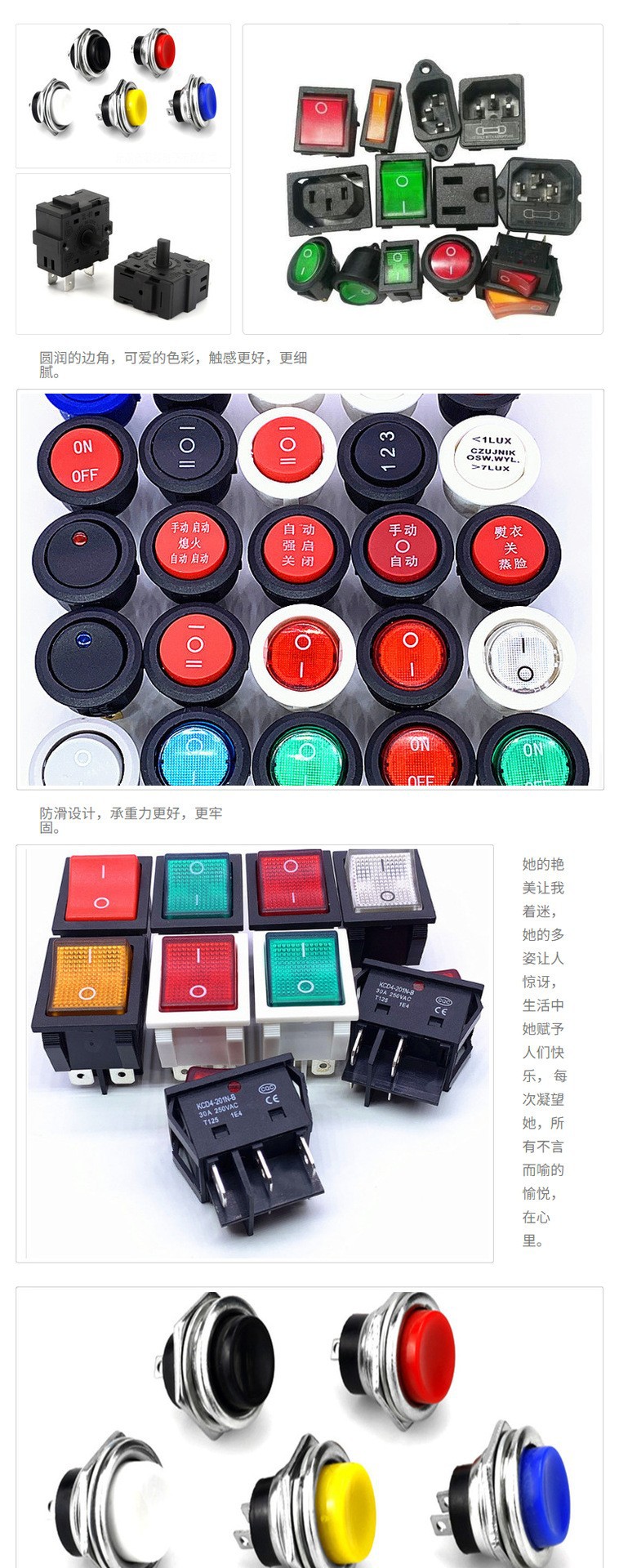 ハイパワー温風機ボタンスイッチ、冷風機電源回転モップスイッチ、電気オーブン回転スイッチ
