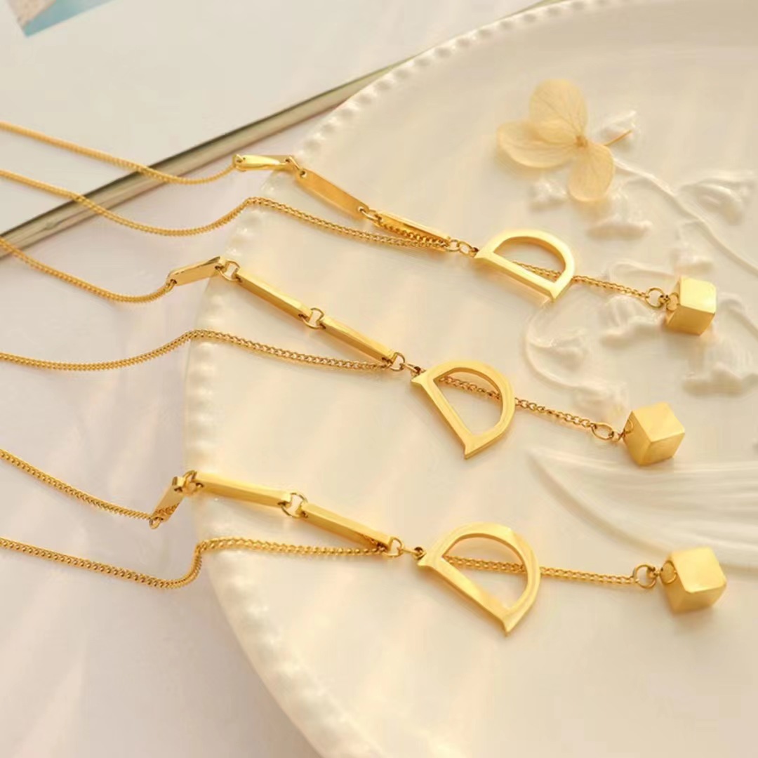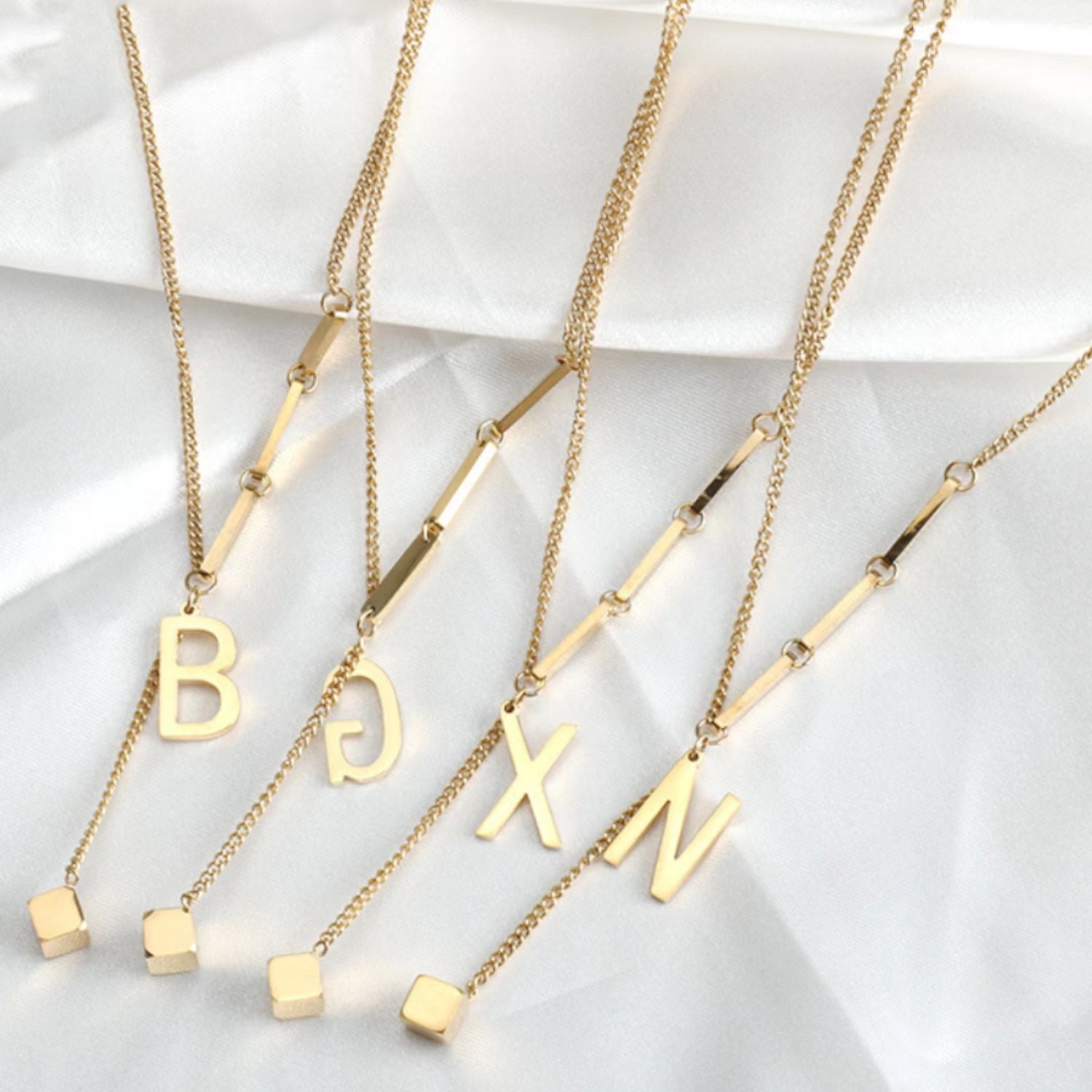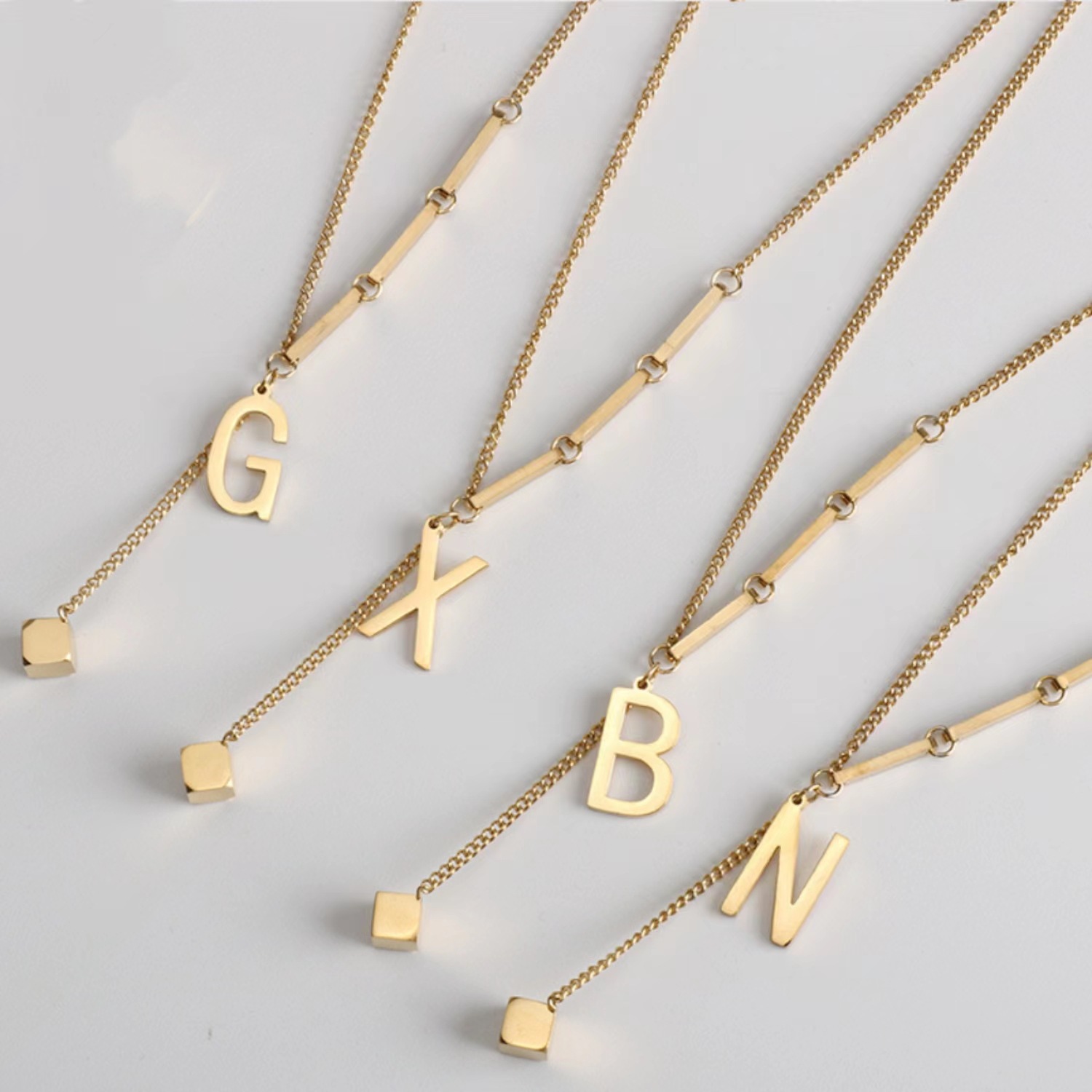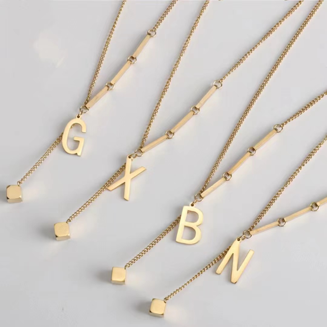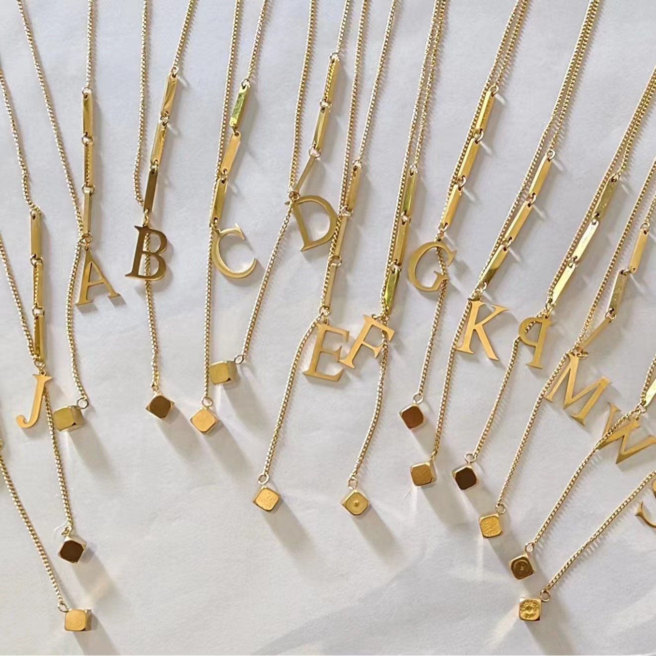 金色の四角のペンダントチタン鋼の鎖の26文字はシンプルでファッション的です。