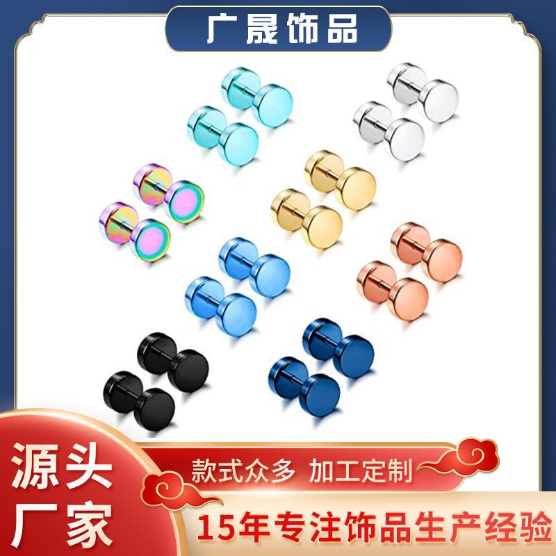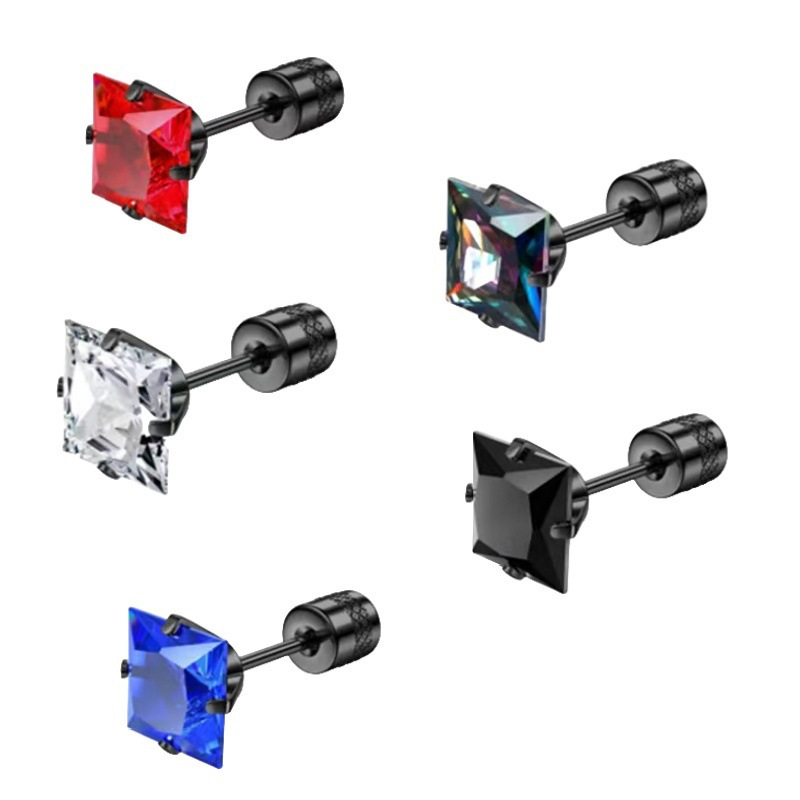クロスボーダー爆金超フラッシュ角型ジルコンピアスイヤリング外ねじチタン鋼人体穿刺アクセサリー耳骨釘卸売り
