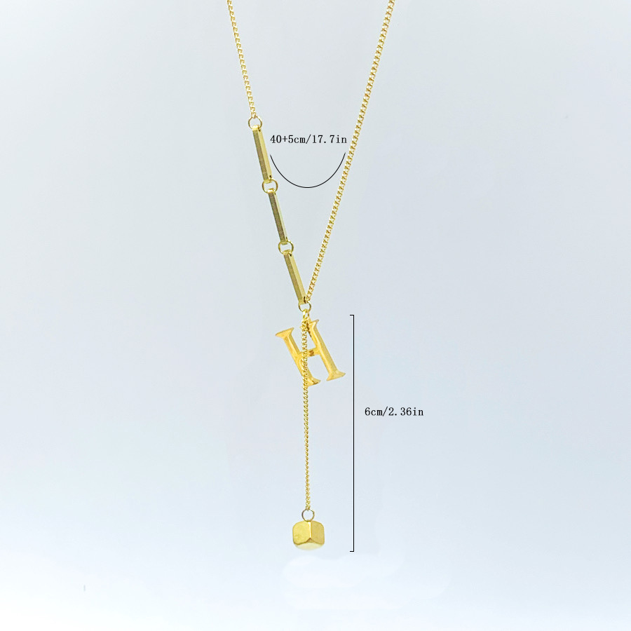 色褪せないステンレス製のクロスボーダーネックレス、レディース用、通し穴付きアルファベットネックレス、秋冬向け高級スクエアタッセルペンダント鎖骨チェーン