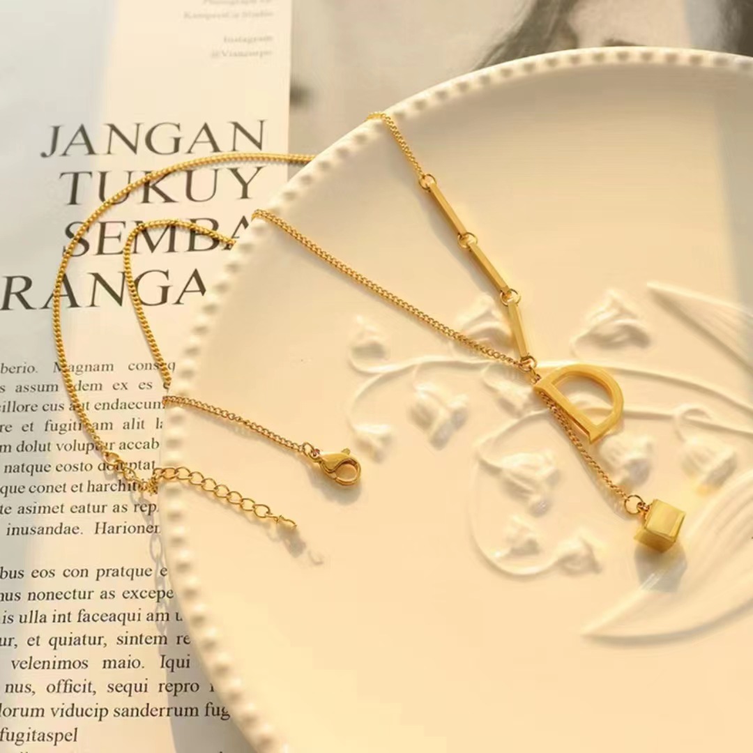 おしゃれでシンプルな個性的なネックレス、ステンレス製のタッセル付き26文字のキューブペンダント、鎖骨チェーン、ファッションアクセサリー