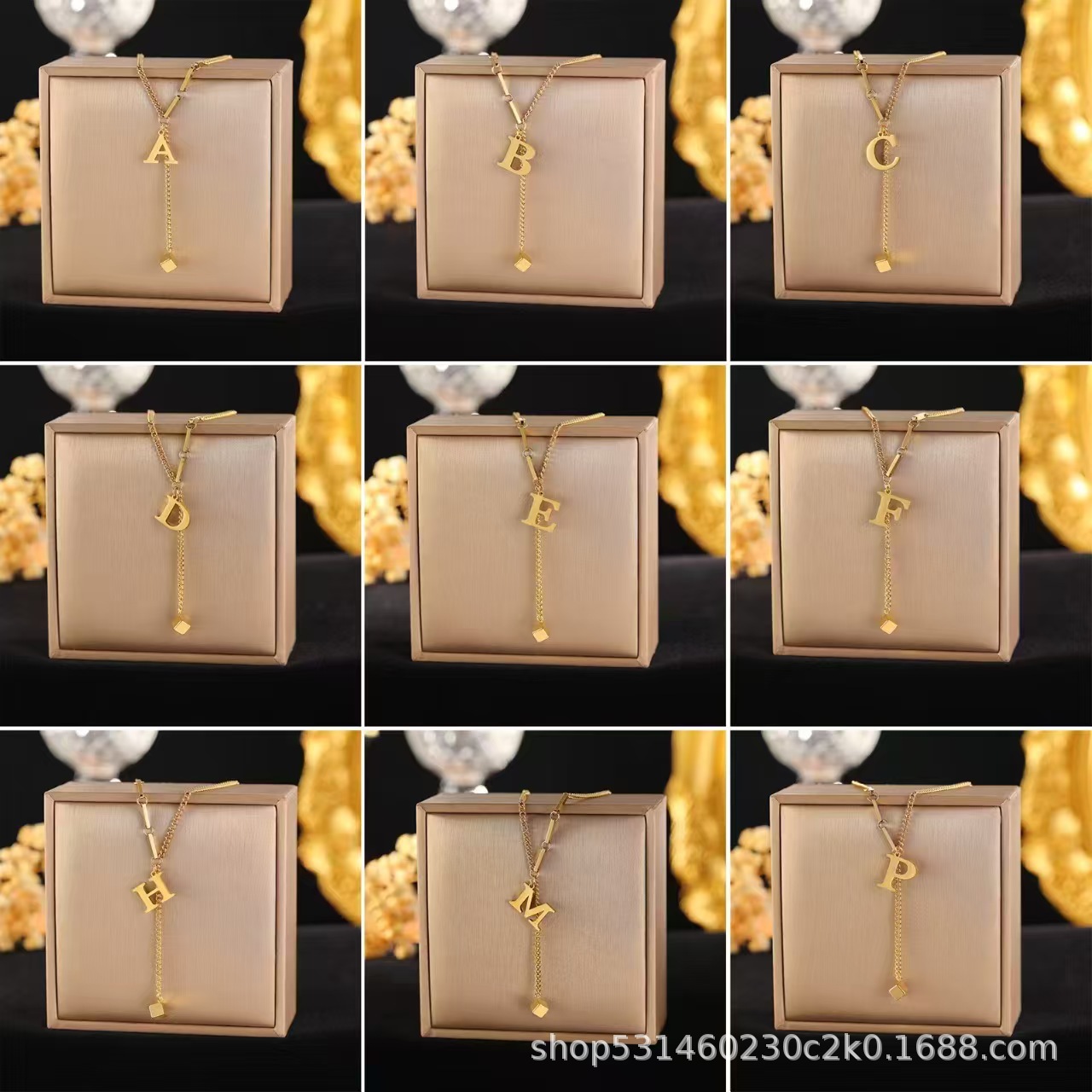 クロスボーダーヨーロッパとアメリカのジュエリーニッチハイエンドステンレス鋼 26 文字ネックレス女性の小さな正方形タッセルペンダント鎖骨チェーン