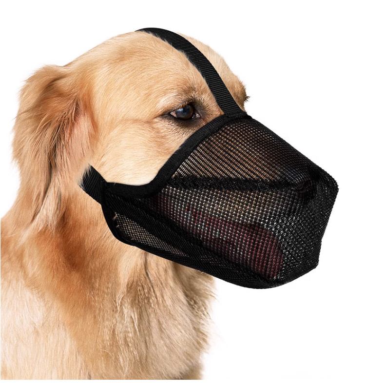 ラブラドールの口のカバーはむやみにコーキを噛んで口を舐めないようにします。