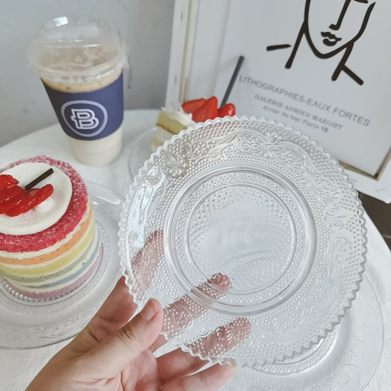 Ktvレトロ浮き彫り模様透明朝食デザート皿小皿ガラス皿スナック琴萱