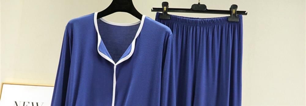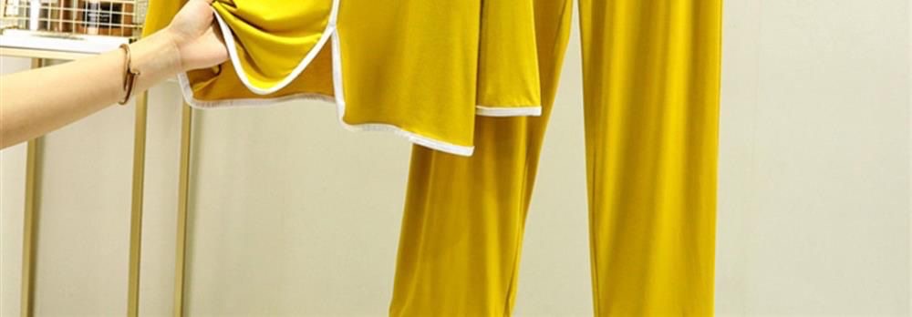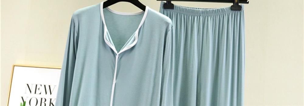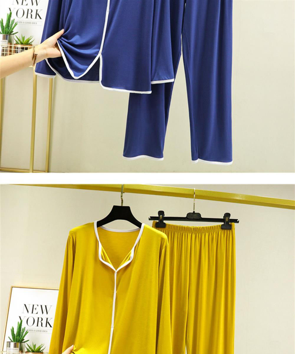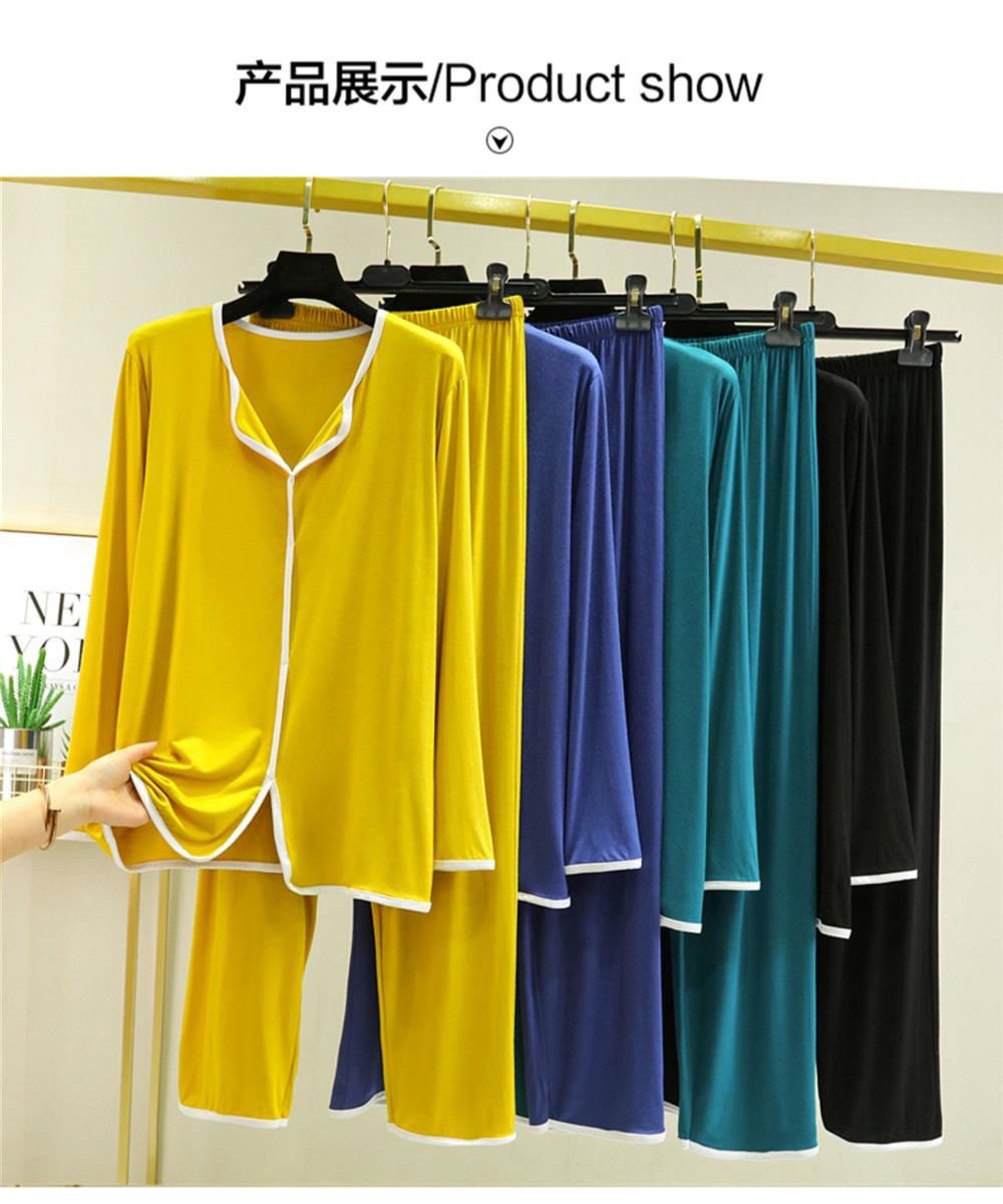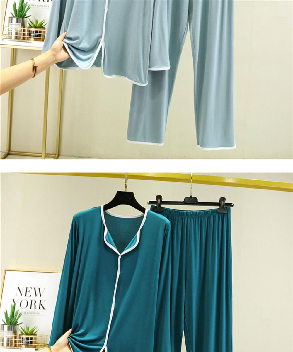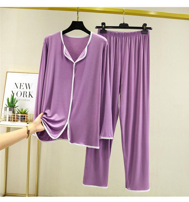 女性のモーダルパジャマ春と秋の大きいサイズのゆったりとした薄い長袖の家庭服セットはカジュアルな2つのセットを着ることができます。