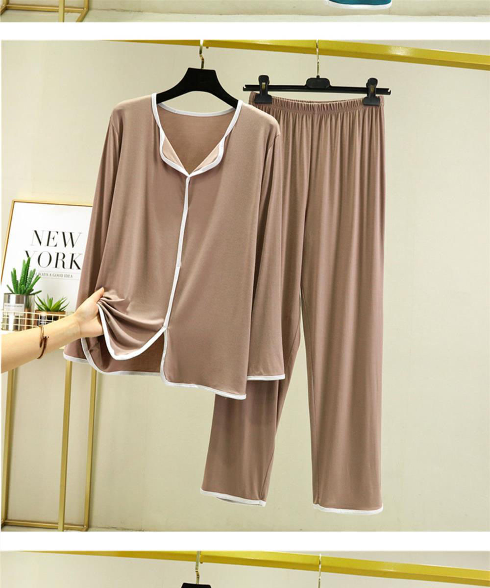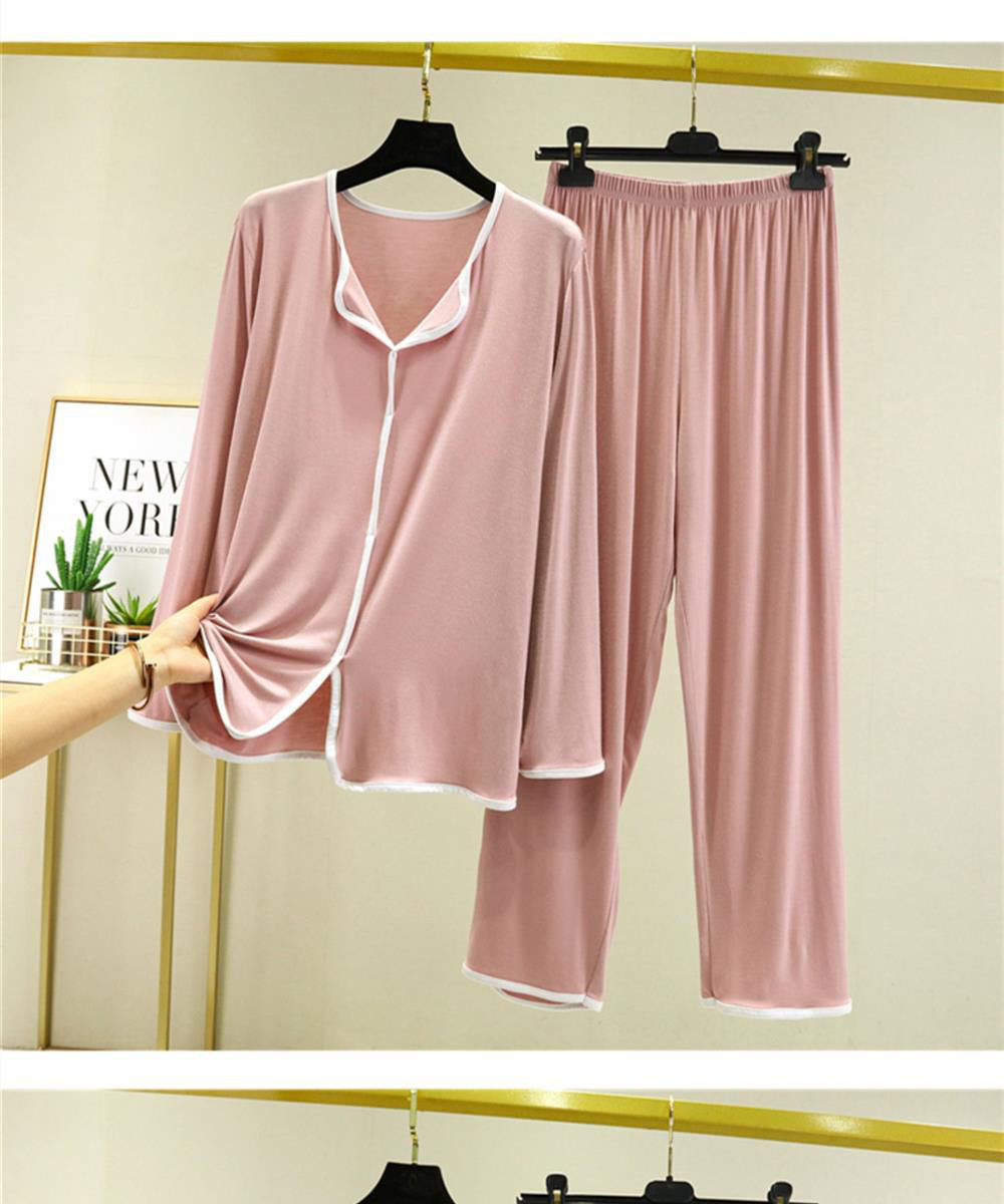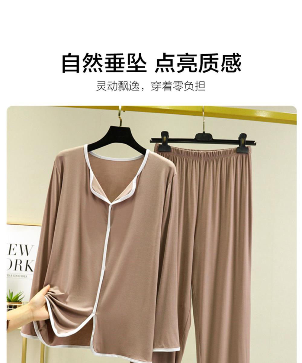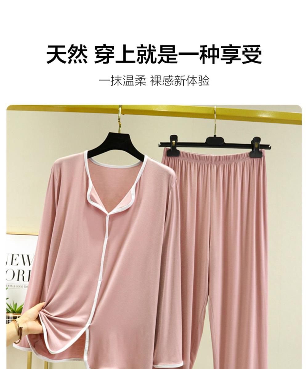 胖妹妹大码睡衣女温柔风薄款开衫长袖长裤简约慵懒风可外穿家居服