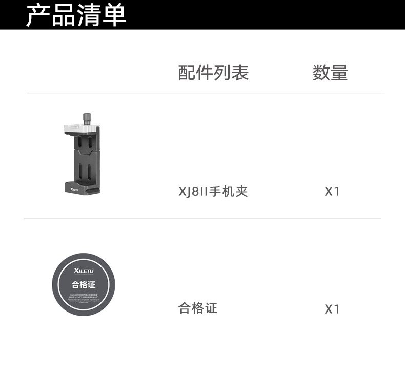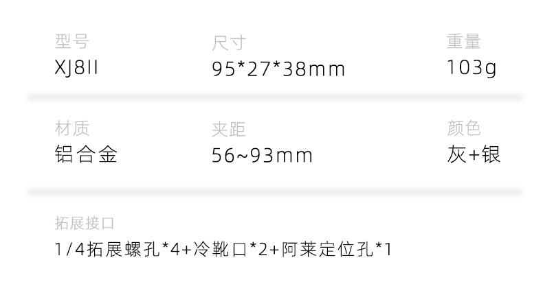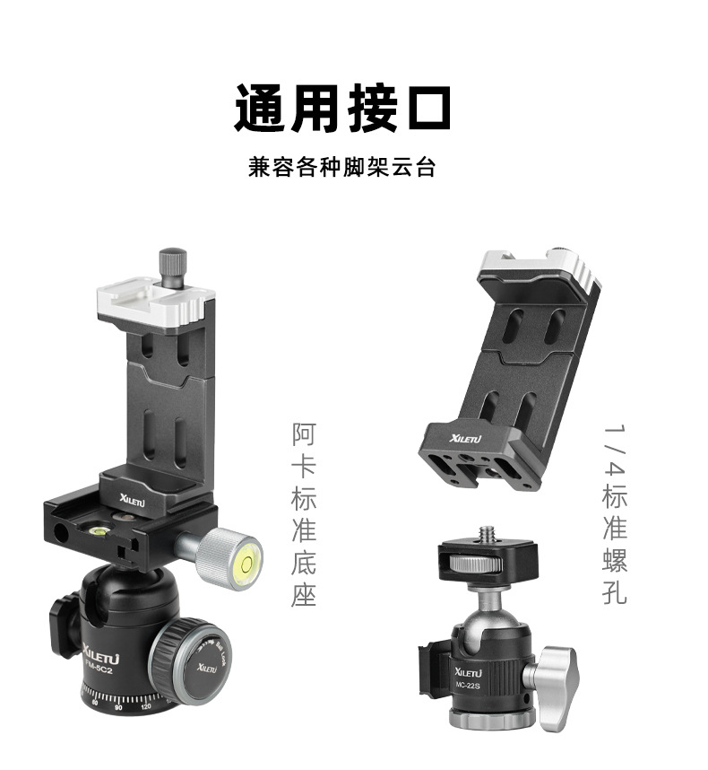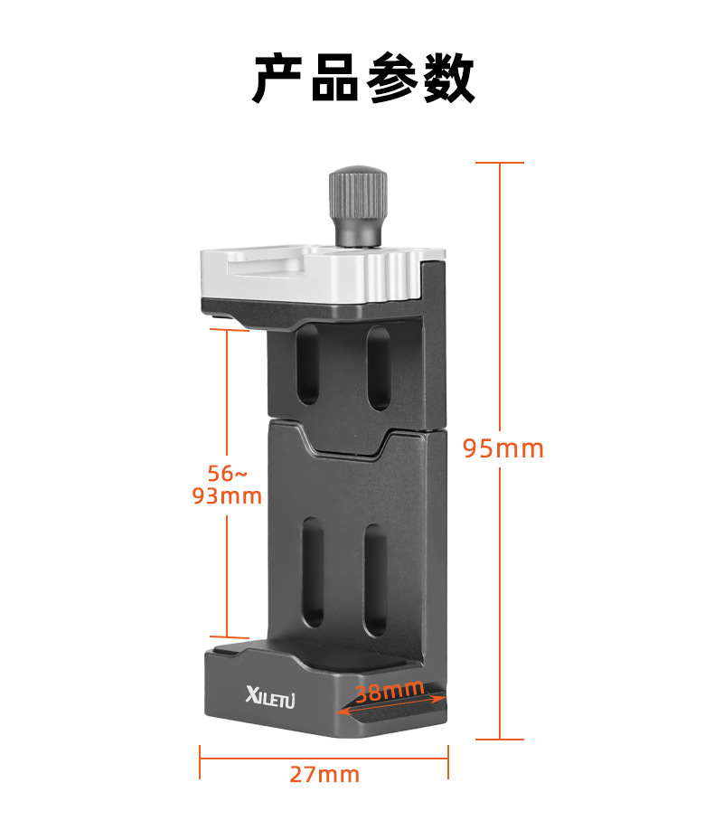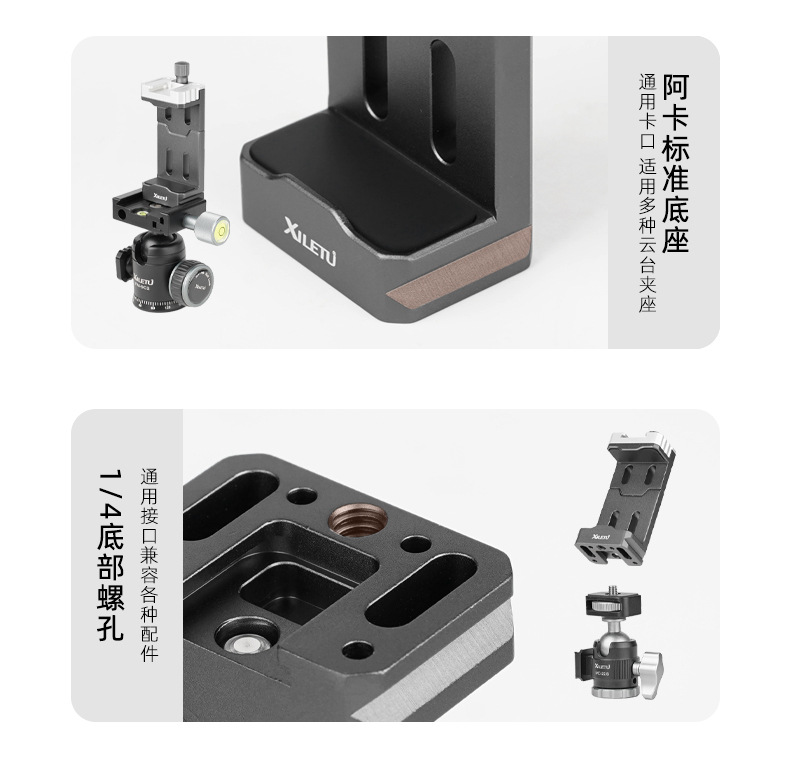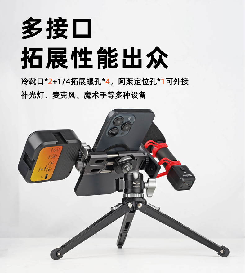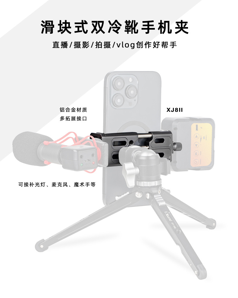 Xiletu XJ-8 第二世代アルミニウム合金携帯電話クリップ写真撮影 PTZ 三脚携帯電話固定クリップ